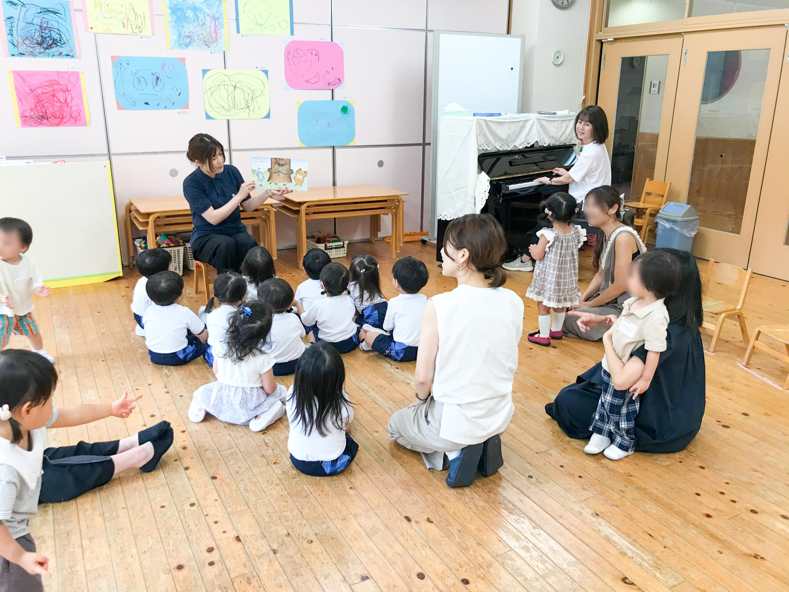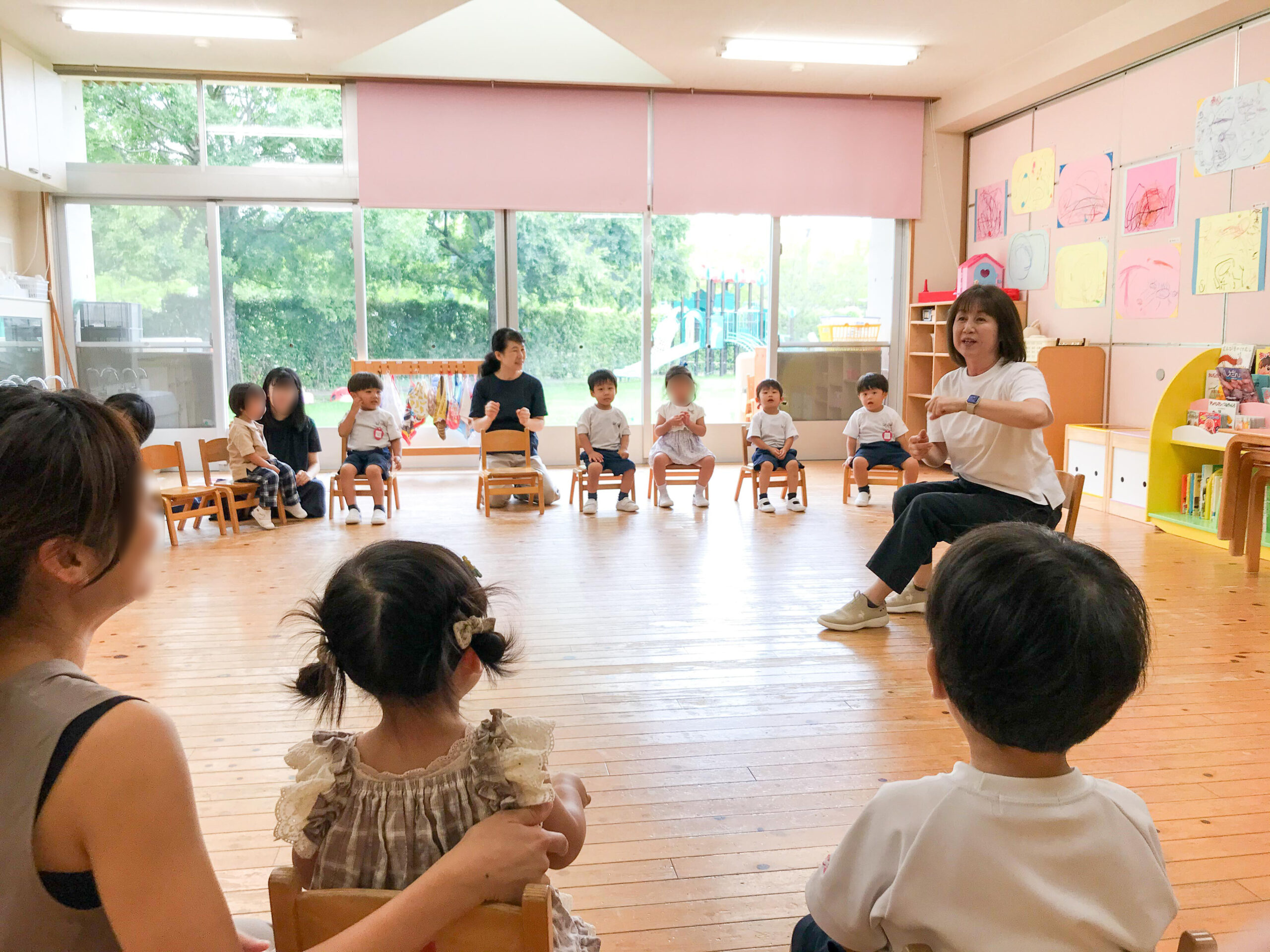 2歳児満3歳児保育いちご組の子どもたちと一緒に、お家の方も交えて保育体験をしていただきました。