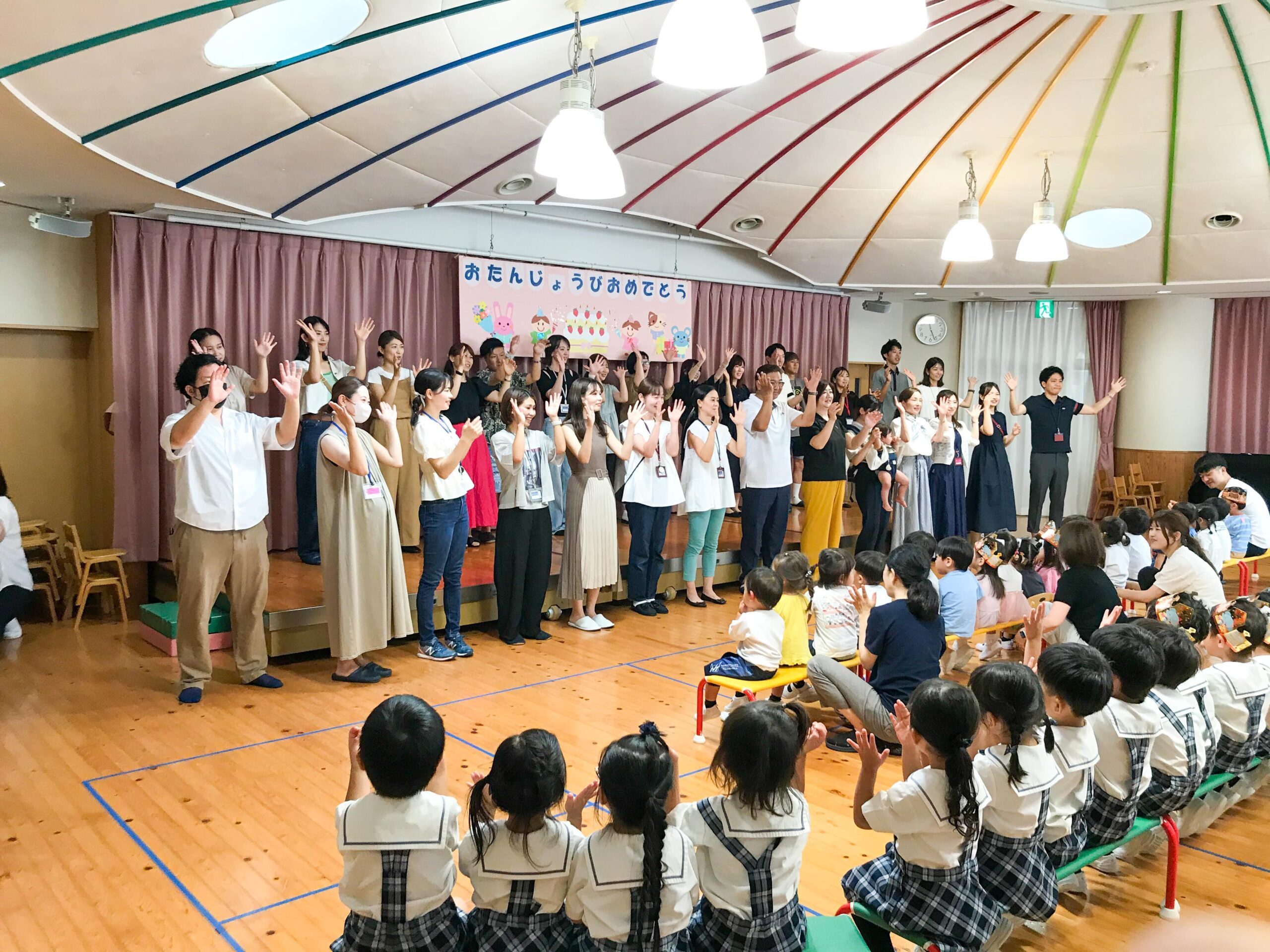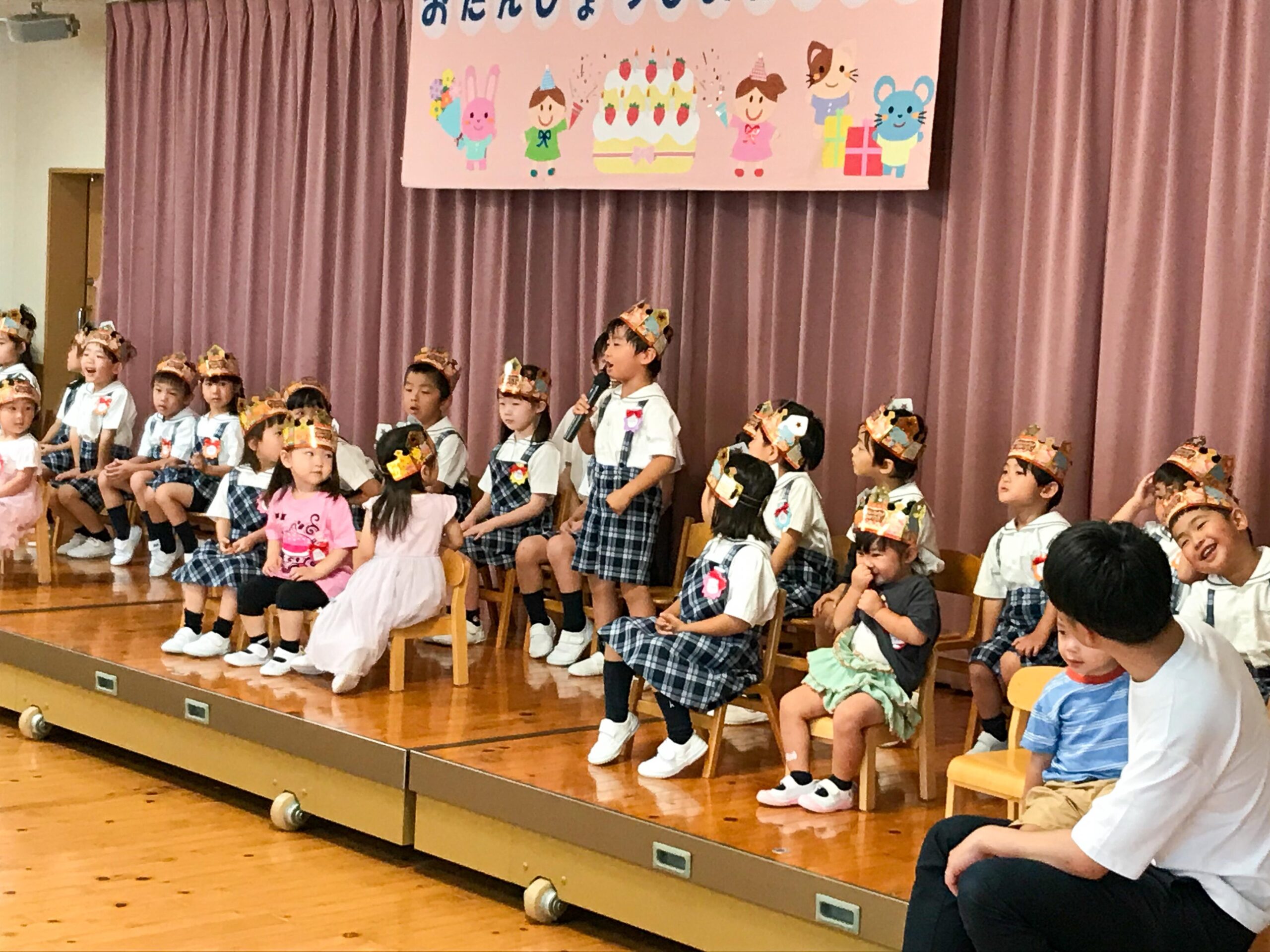 7月8日(火)に、6・7・8月生まれのお友達の誕生会を行いました。今回は24人の子どもたちをお祝いすることになりました。