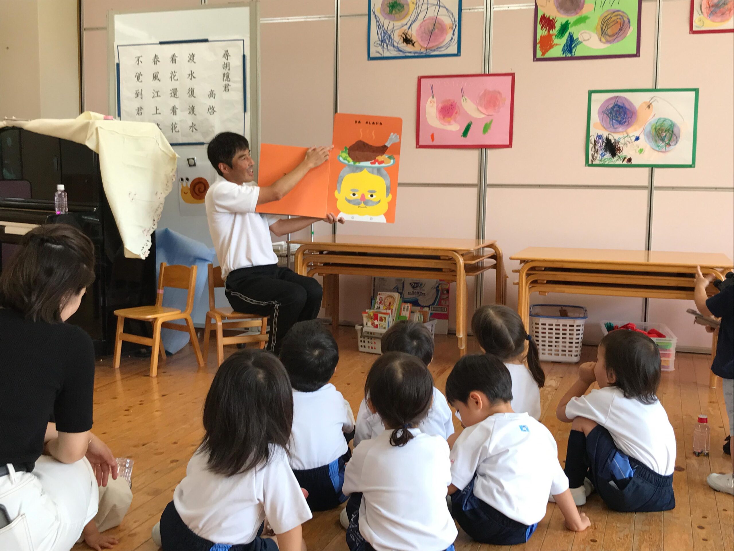 締めくくりは絵本「ぼうしとったら」の読み聞かせです。短い時間の交流でしたが、年少組の子どもたちもとても楽しかったようです。奈良学園幼稚園に、また遊びに来てくださいね!