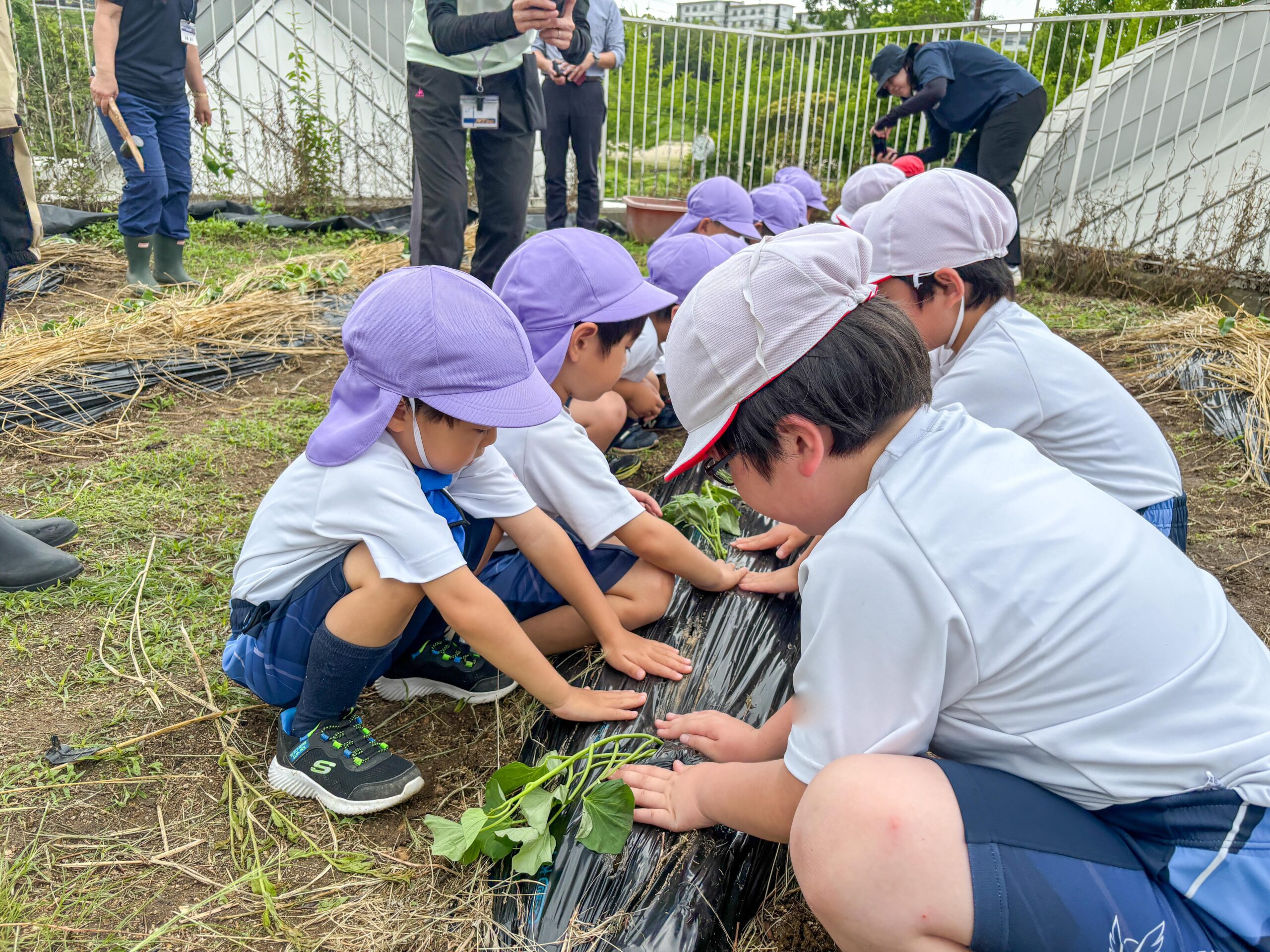年中組がP2生とサツマイモの苗植え