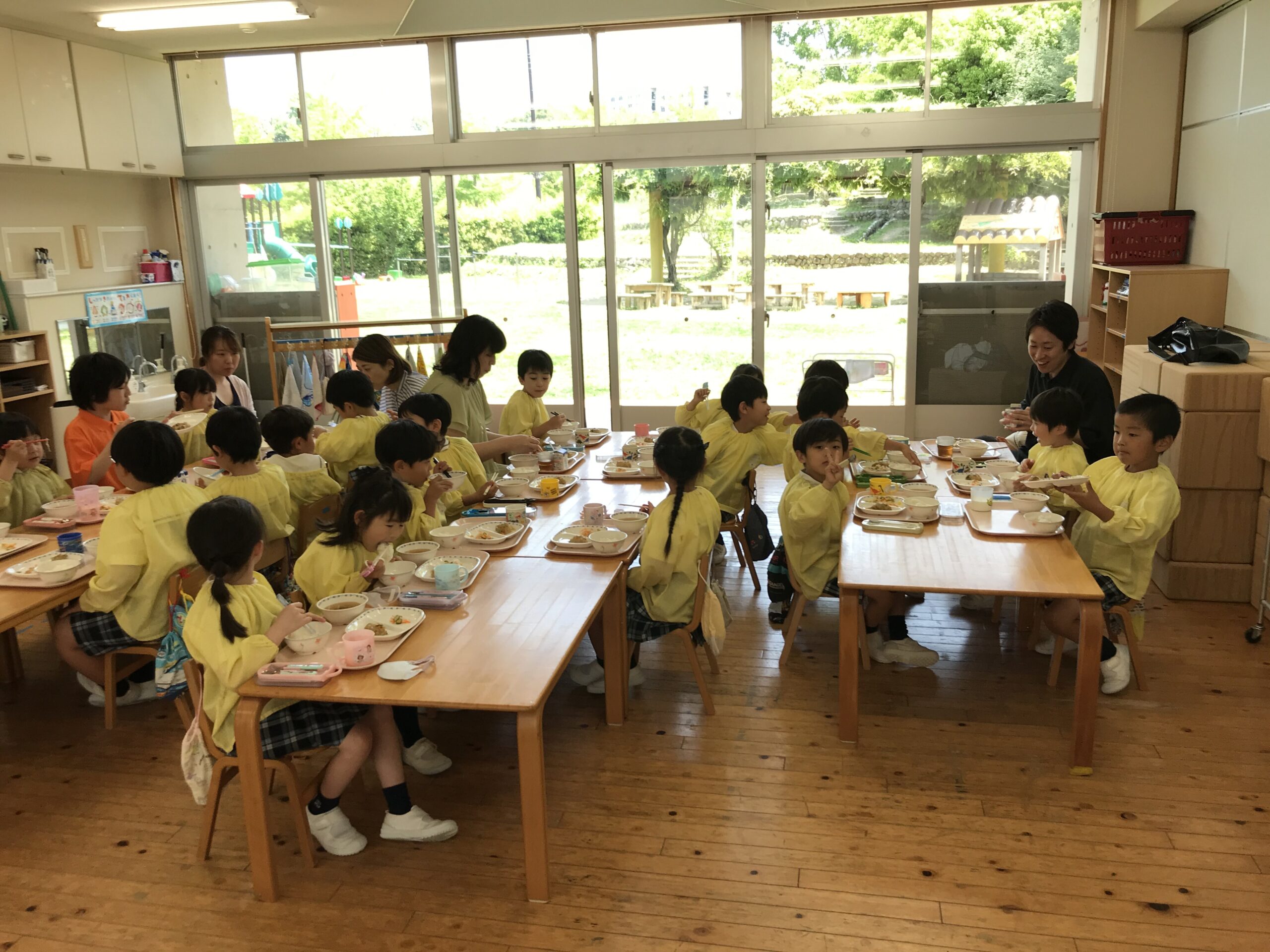 年少組以上の子どもたちはお部屋に戻ってから、お誕生日カードをもらい、お家の方と一緒に給食をいただきました。あっという間の楽しい1日でした。