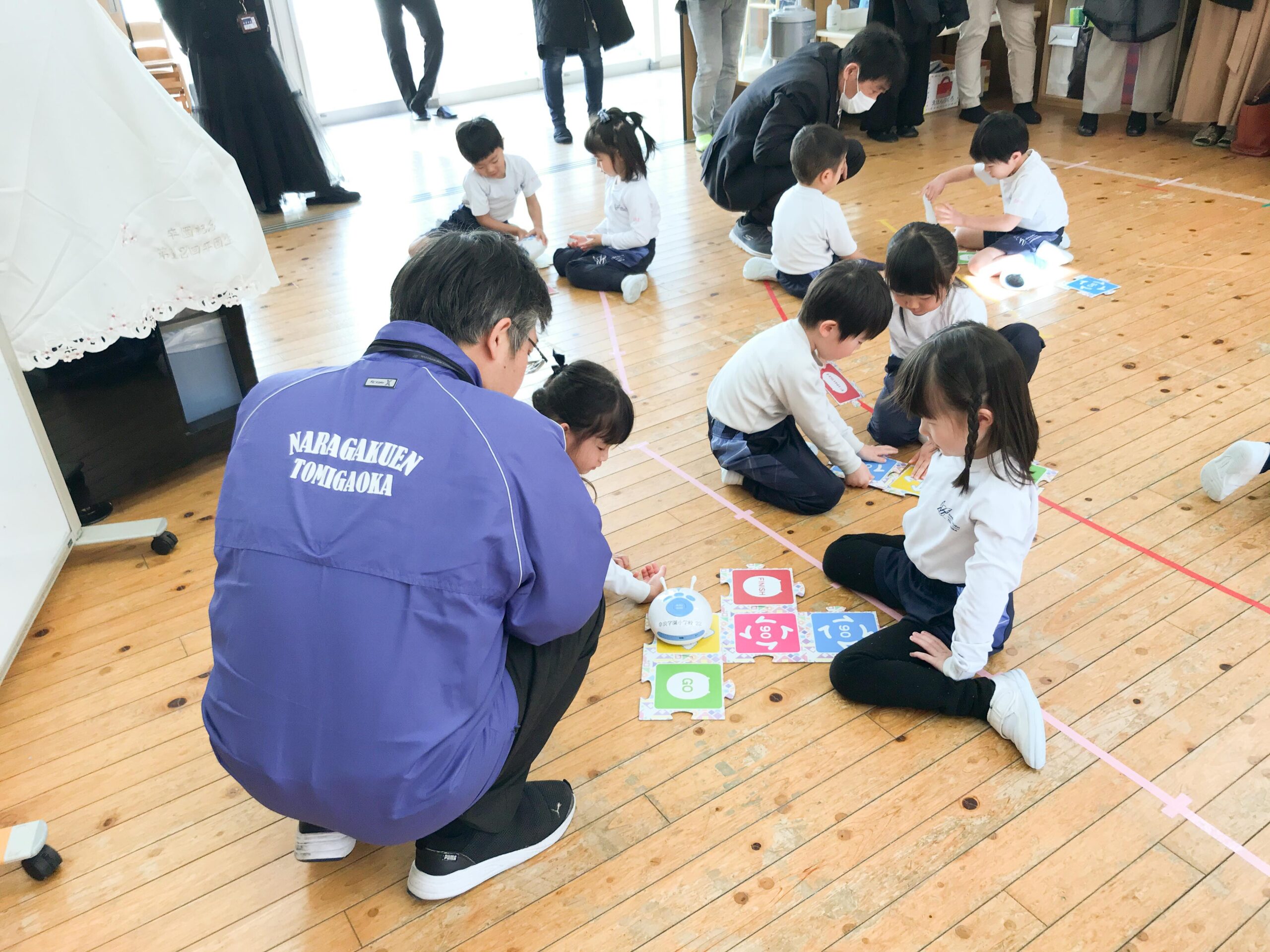 2月14日(金)年中組の子どもたちが、体験授業を受けました。今回は、奈良学園小学校の藤野先生にお越しいただいて、プログラミング体験を行いました。