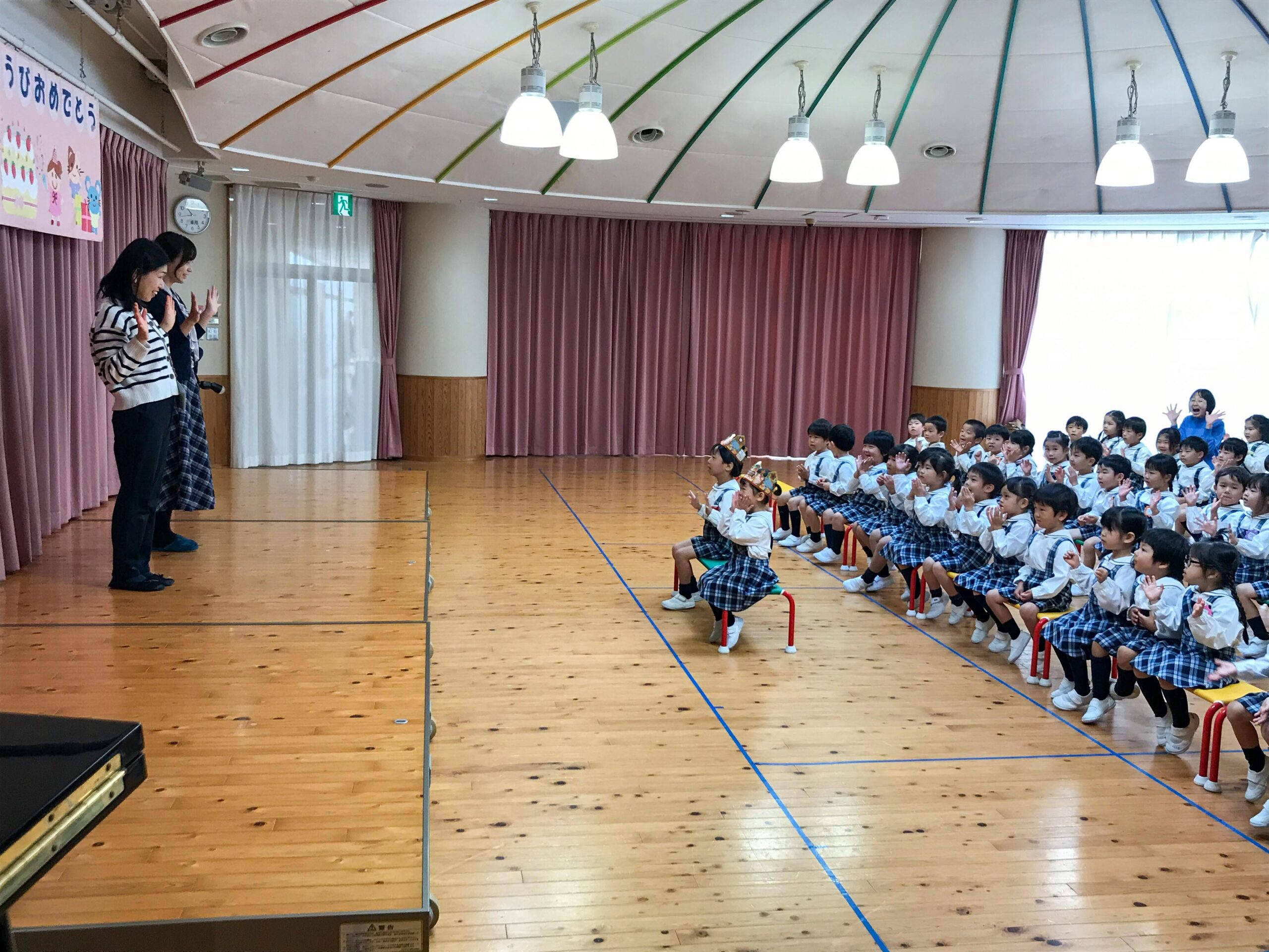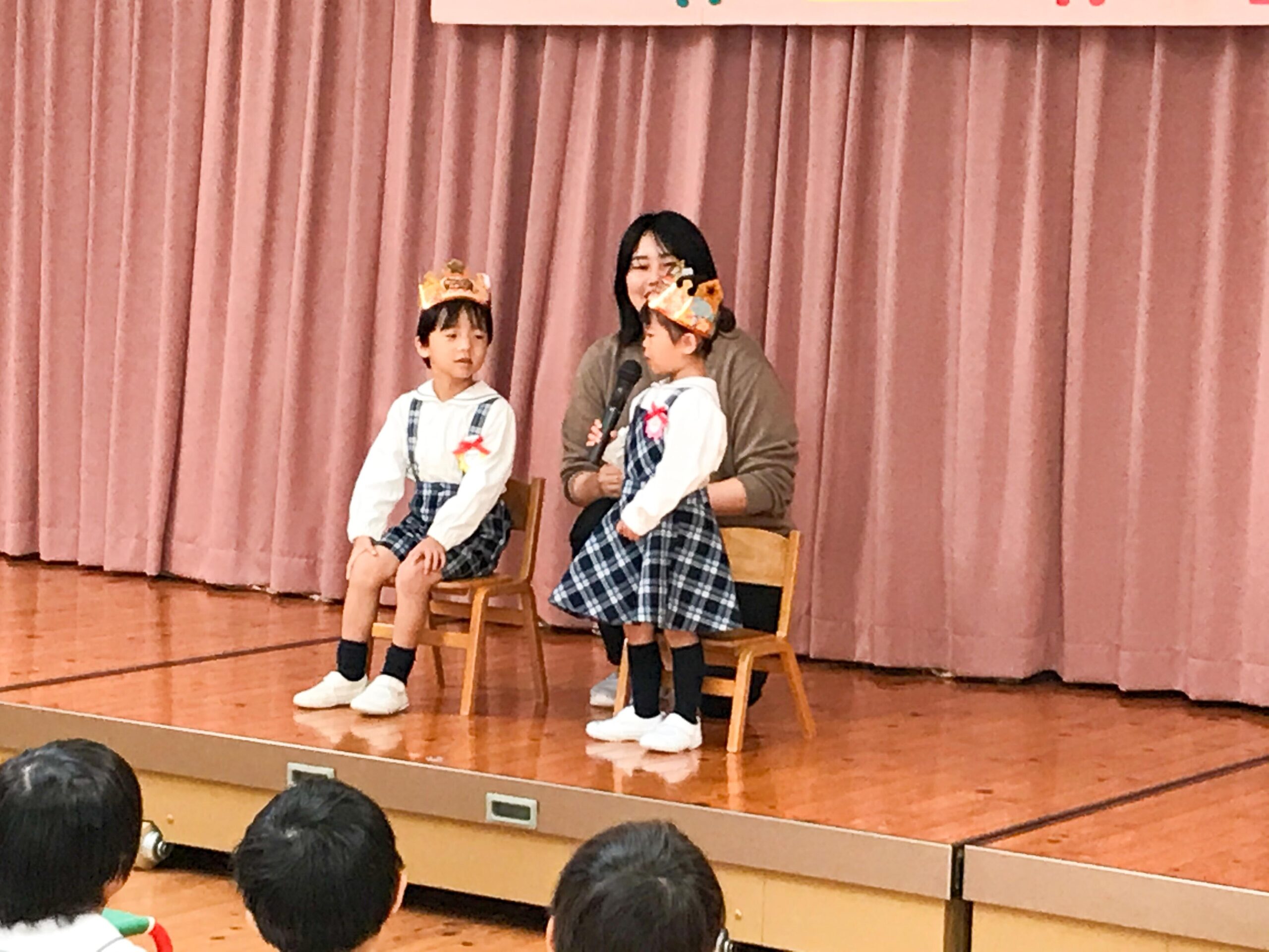 今回お祝いするのは2人。王冠をかぶって登場し、一人ずつお名前と何歳になったか、みんなの前で自己紹介をしてくれました。