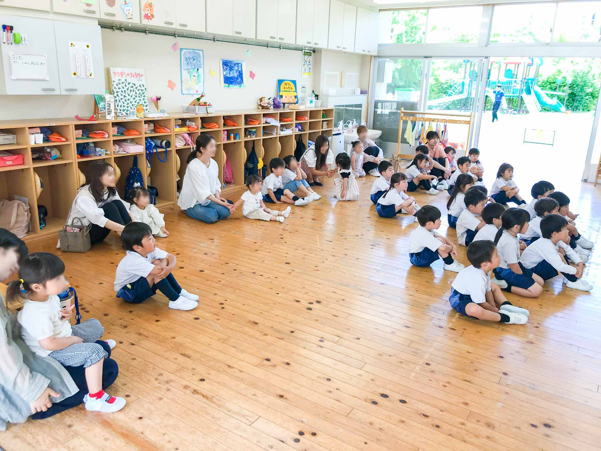 最初に、園内のいろんなお部屋や、教室での保育の様子をご覧いただきました。