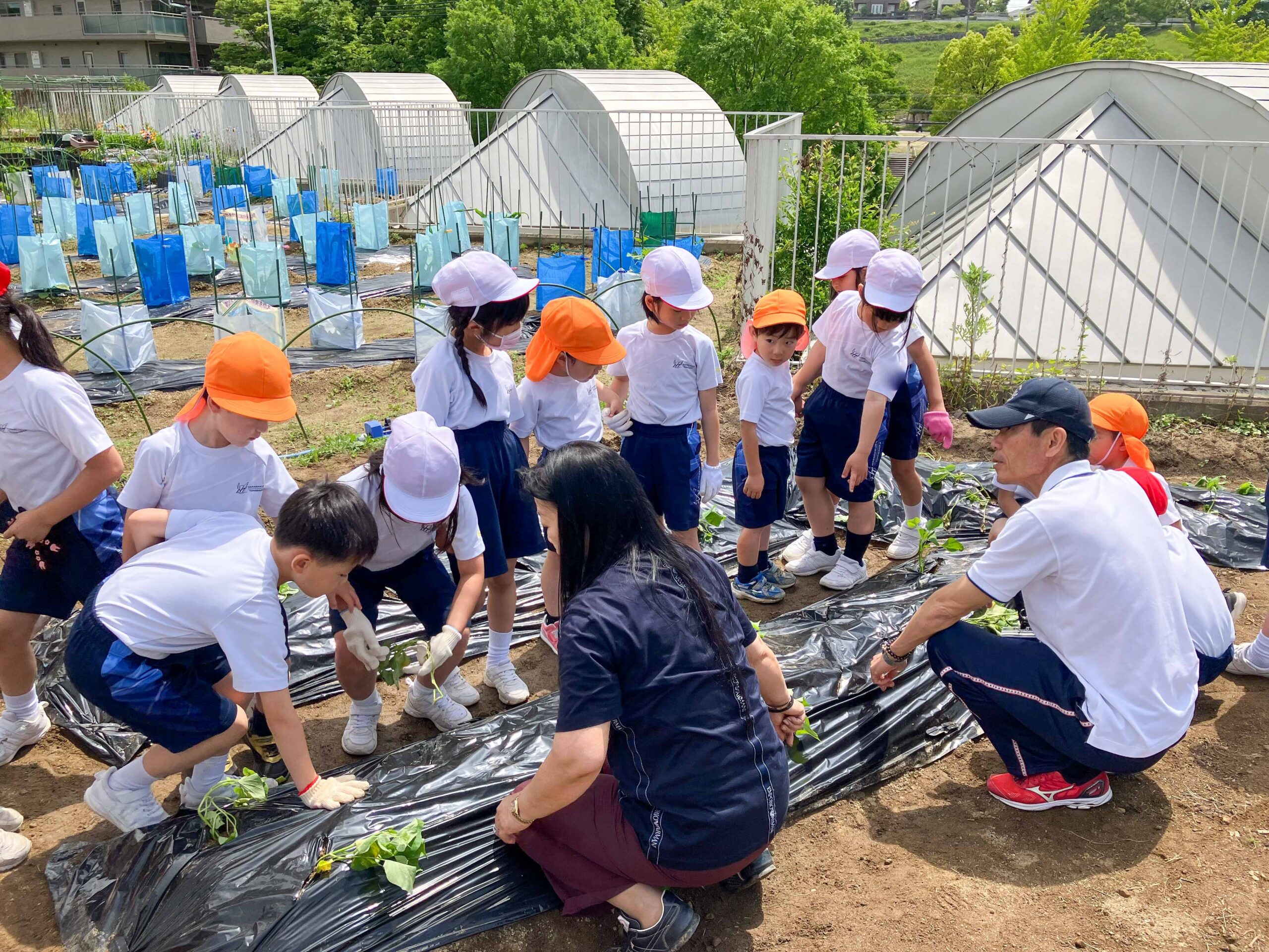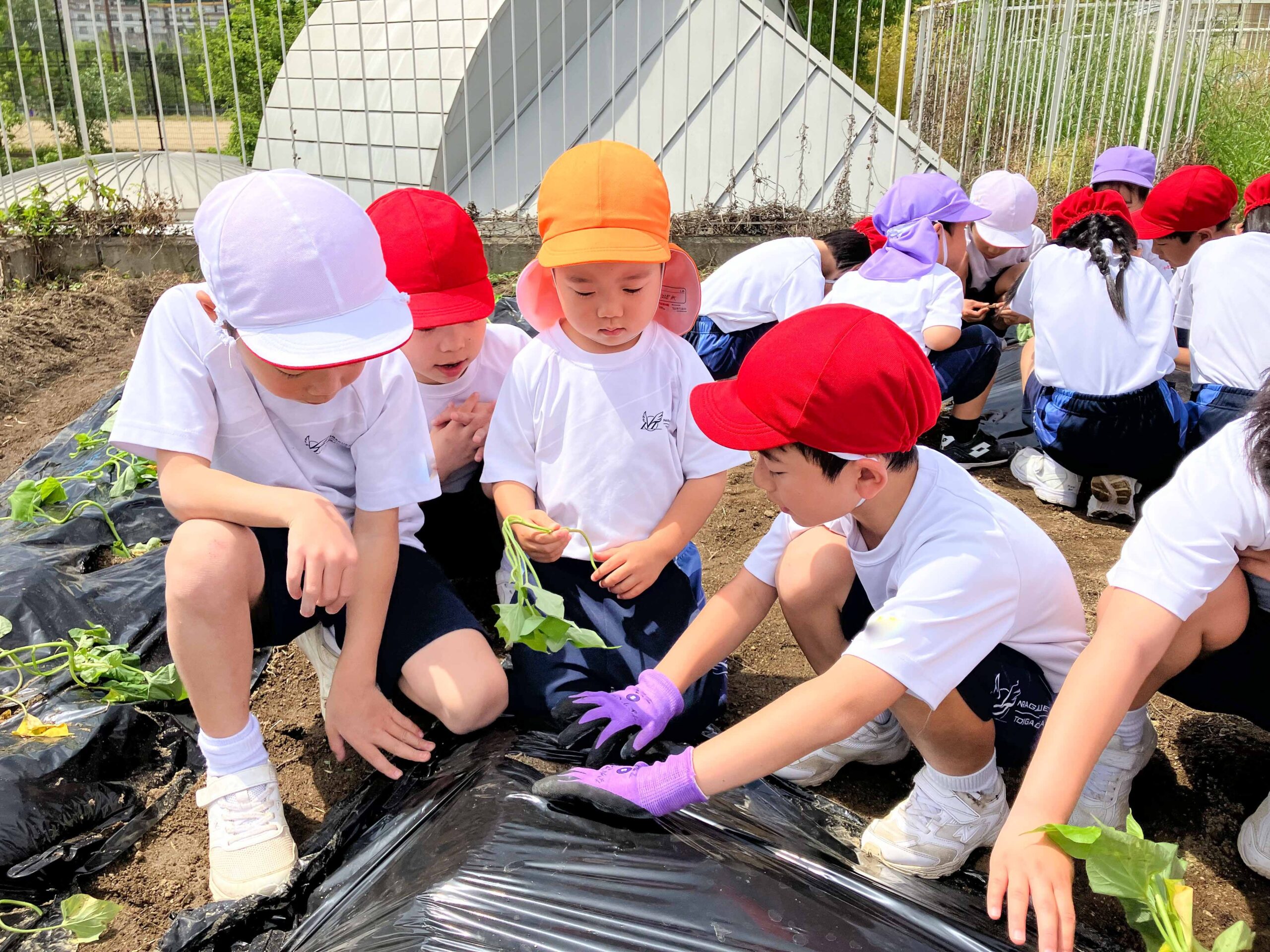5月23日(木)年中組の子どもたちが、P2生の学級園に出向いて、サツマイモの苗を植えました。
