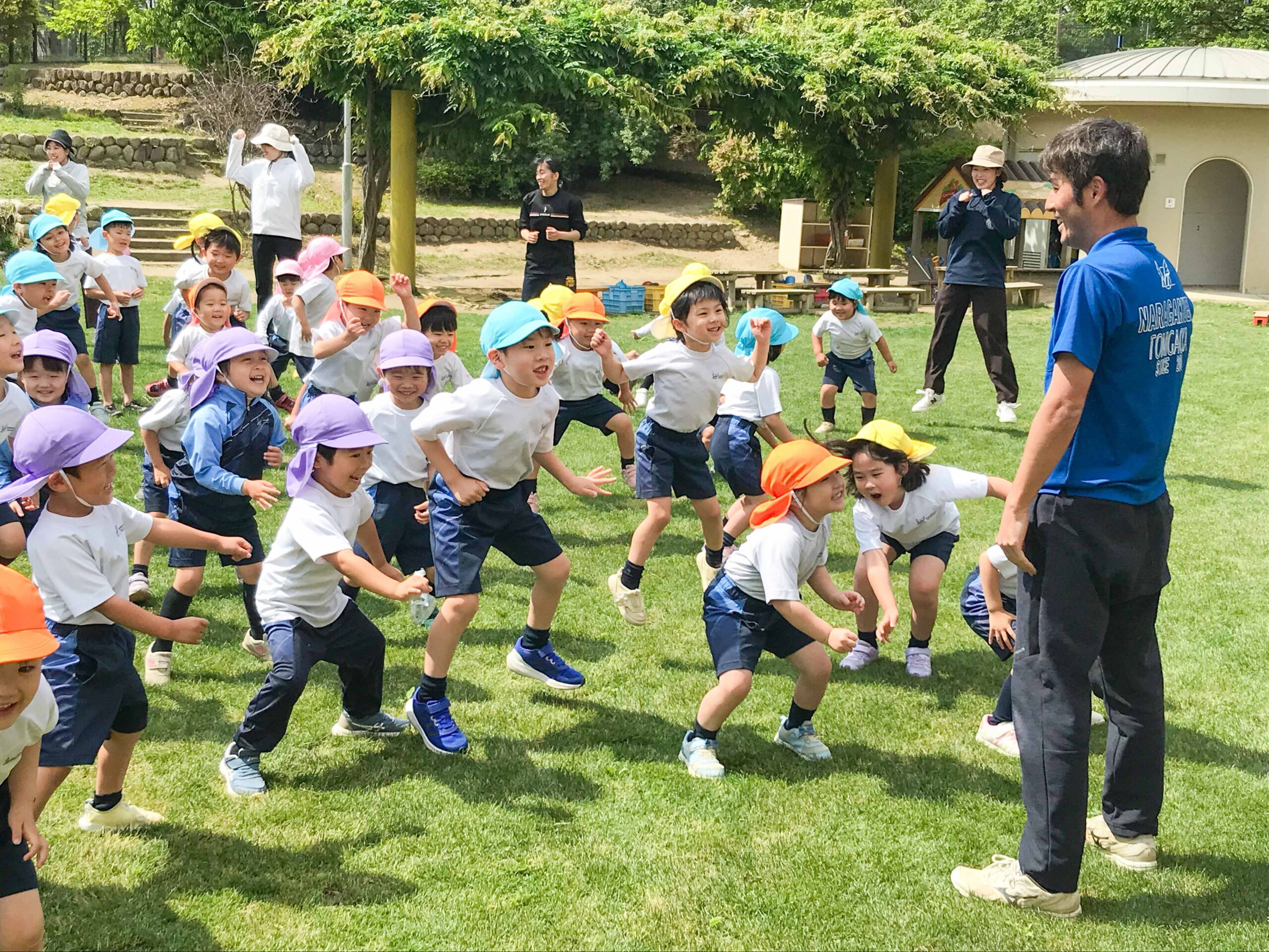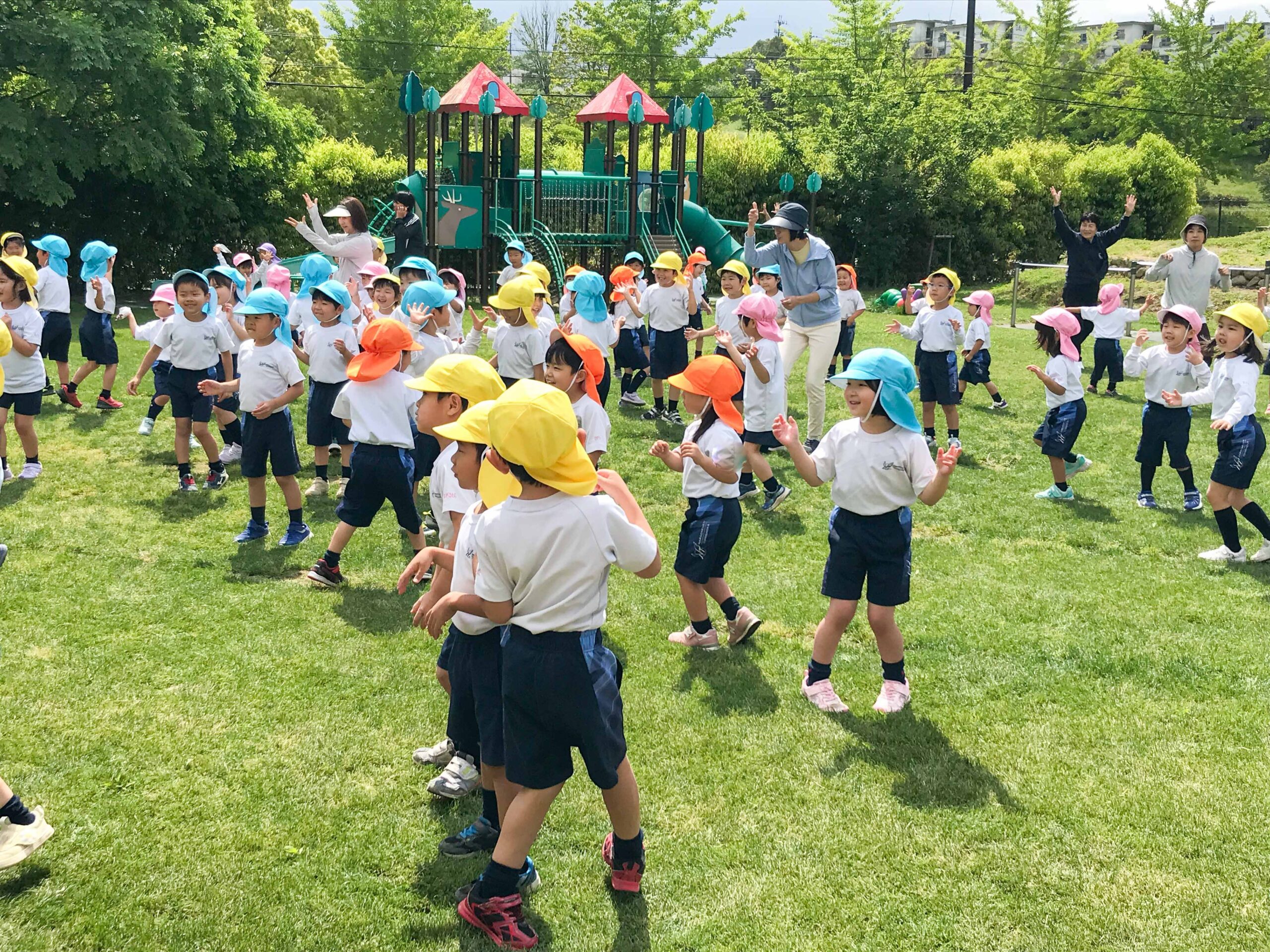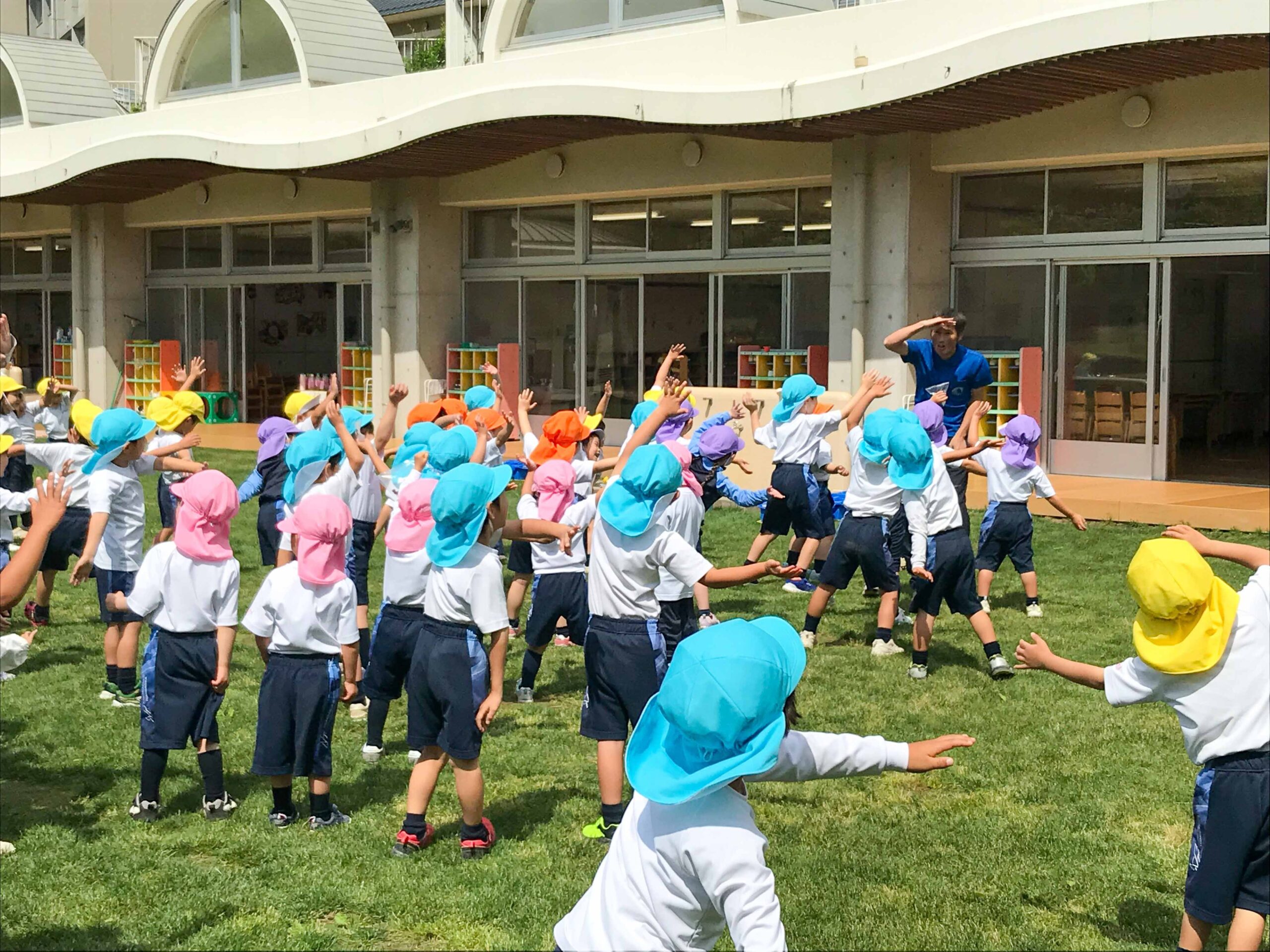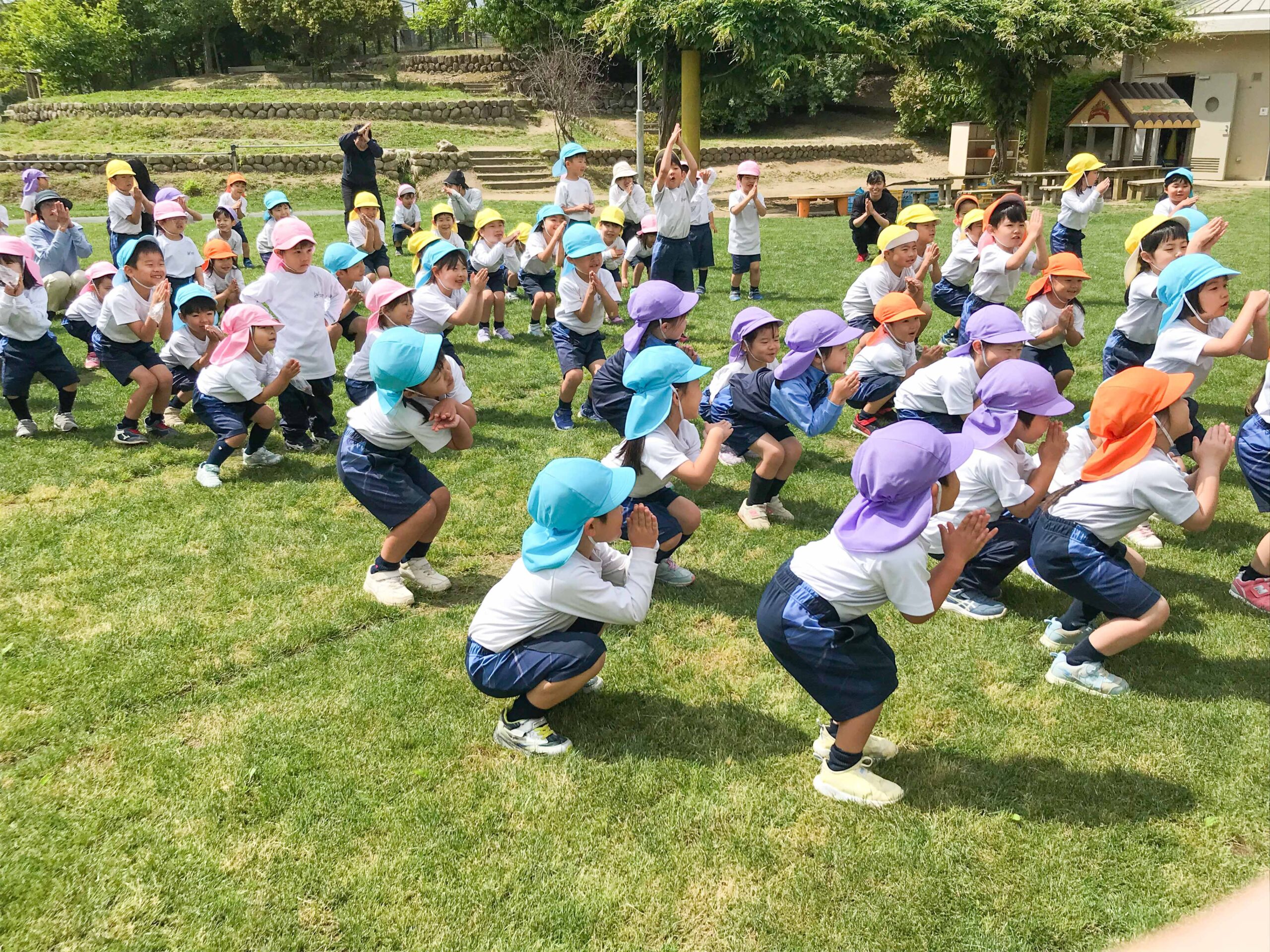 うきうきタイム 2024.05.20(月) Tweet 毎週木曜日の朝は「うきうきタイム」。年少組・年中組・年長組のお友達が、全員園庭に集合して、一緒に体を動かします。 5月16日(木)は、少し強い風が吹く日になりましたが、子どもたちは元気そのもの。 先生の指示を聞きながら、跳んだり跳ねたり、くるくる回ったり・・・。後半は音楽に合わせ、全身を使って運動しました。 笑顔いっぱいの子どもたち。最後の決めポーズもしっかり決まり、「今日も1日がんばろう!」と気合いが入った様子でした。 « はじめましての会 4・5月お誕生会 »