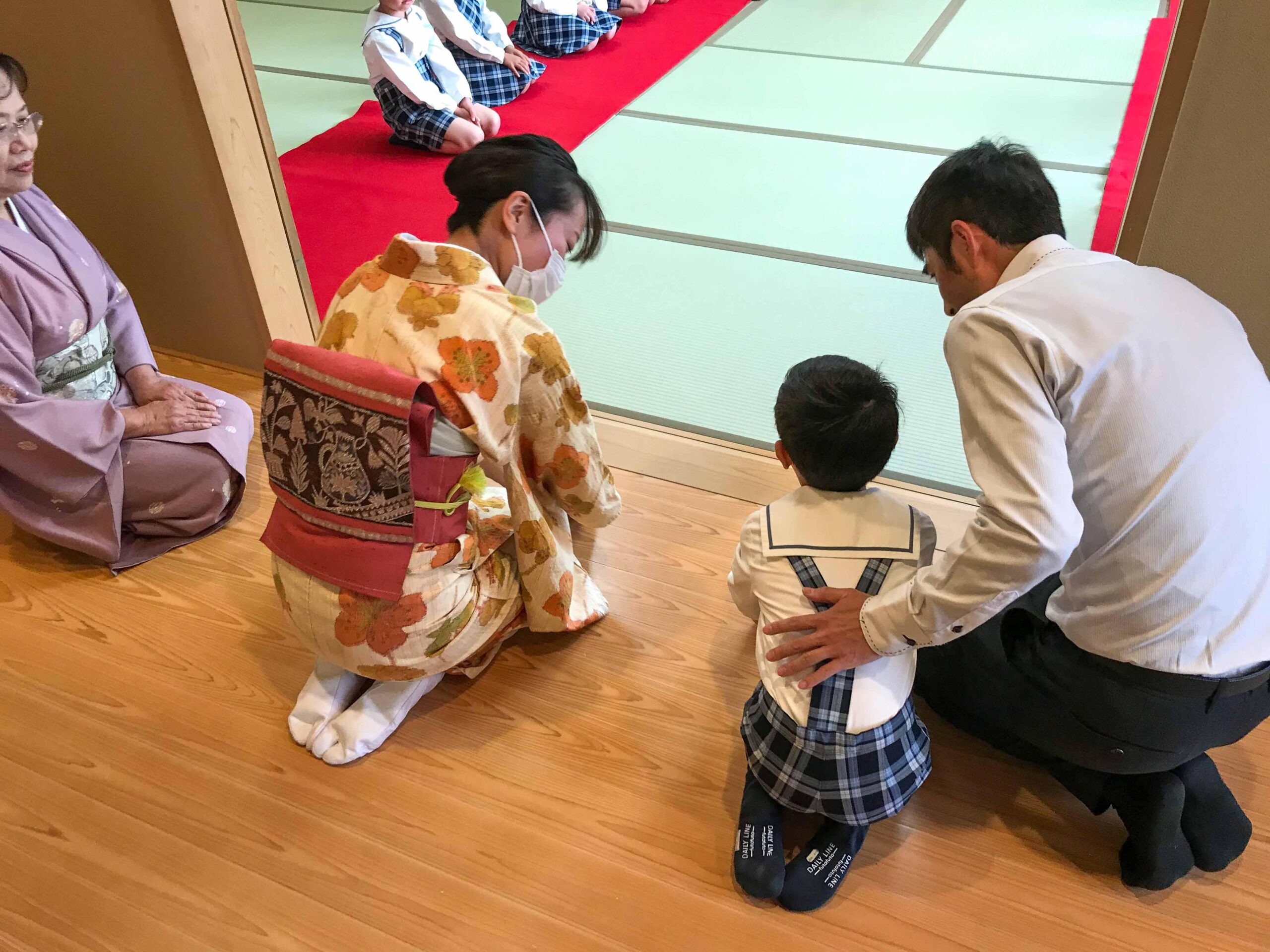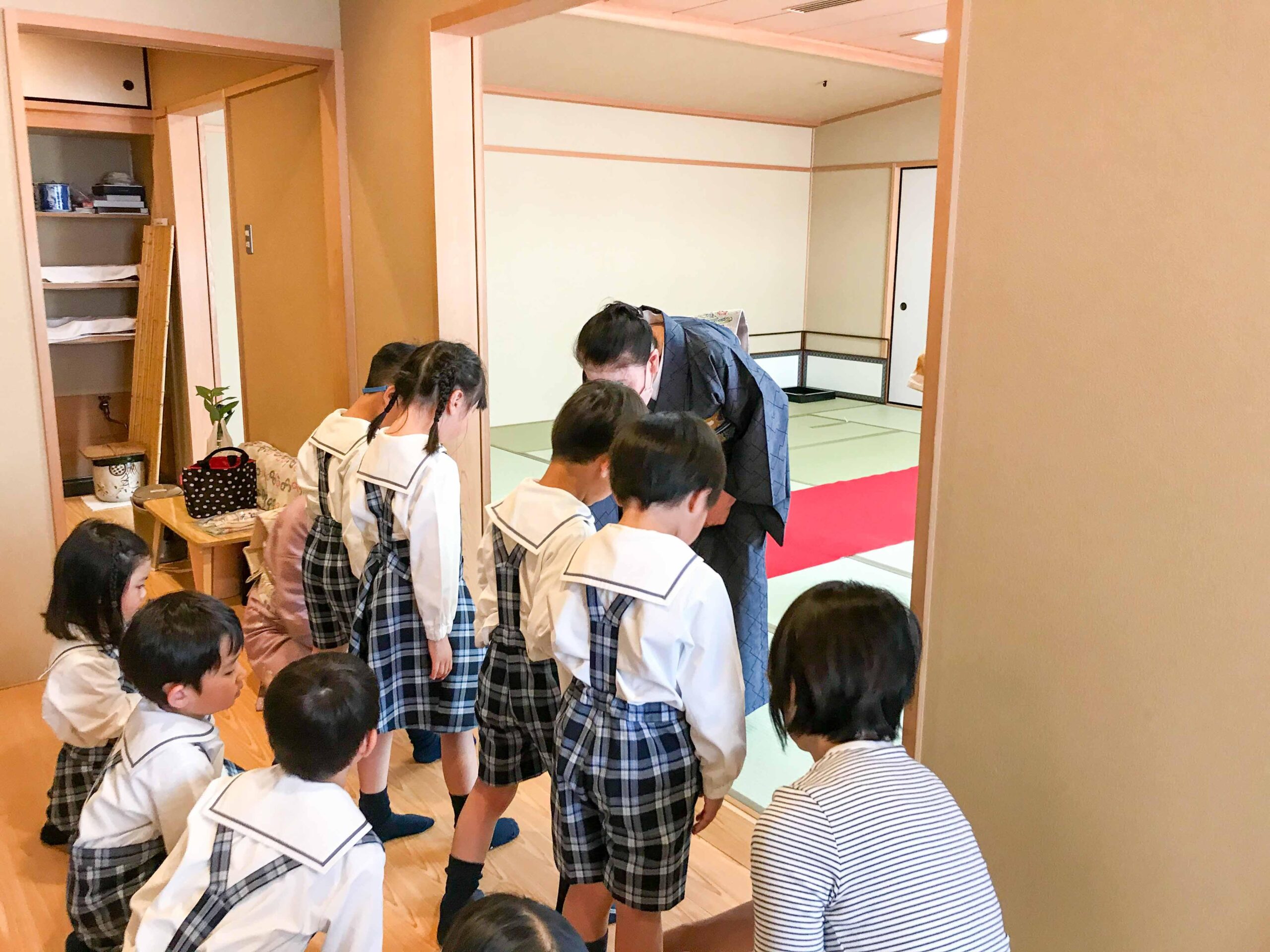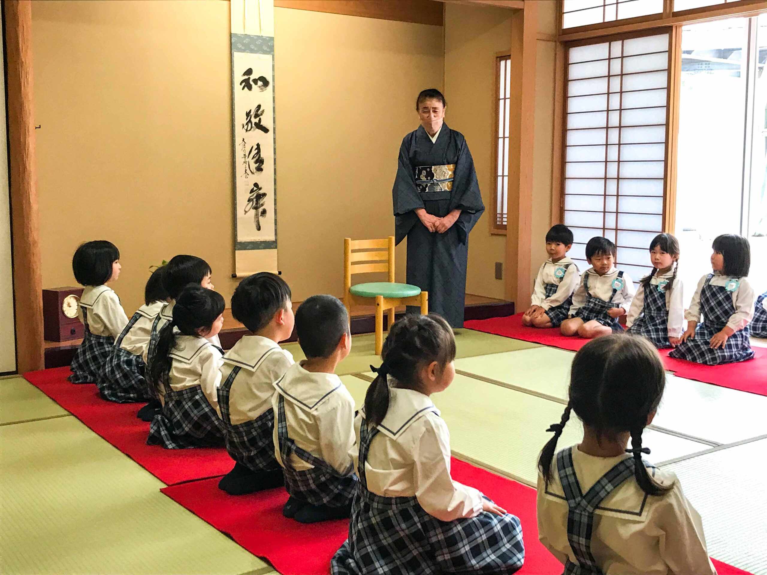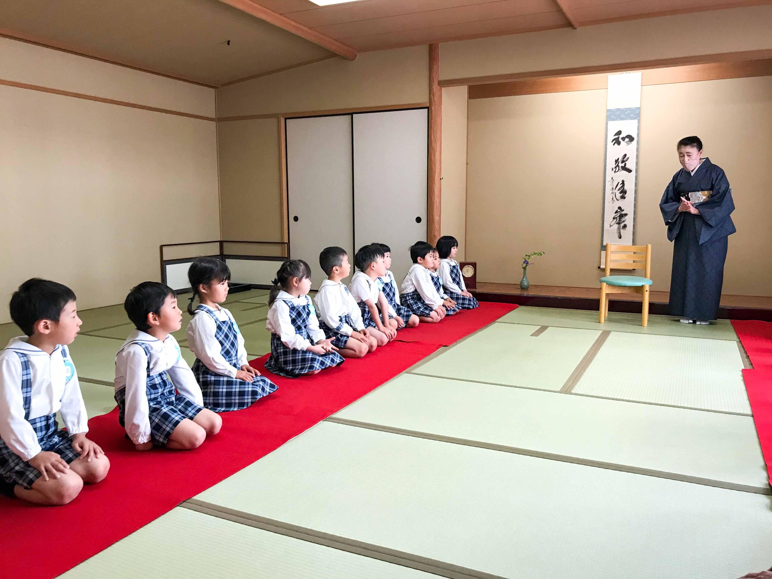 4月22日(月)に、年長組の子どもたちが、今年度初めてとなる礼法の時間を過ごしました。