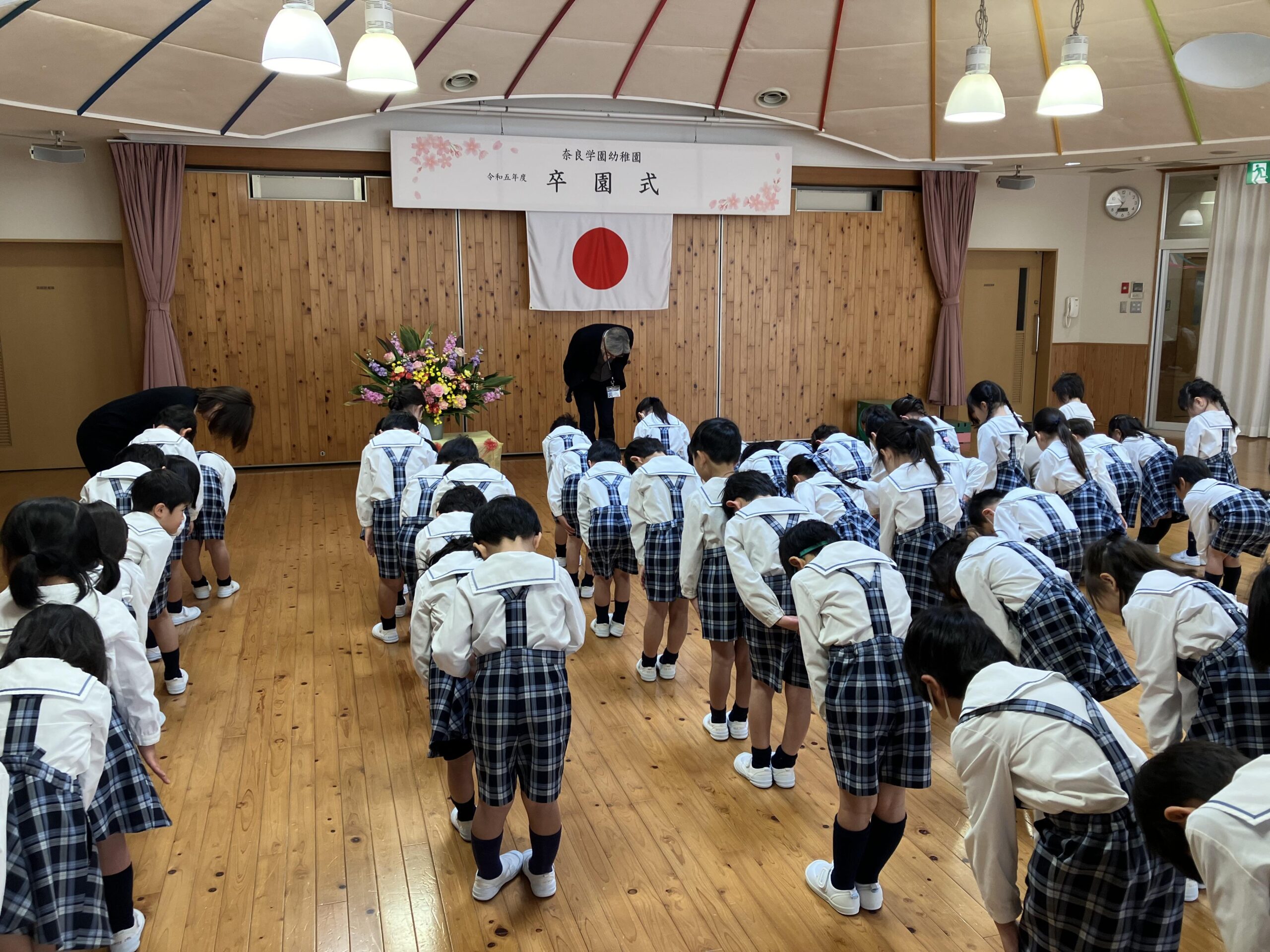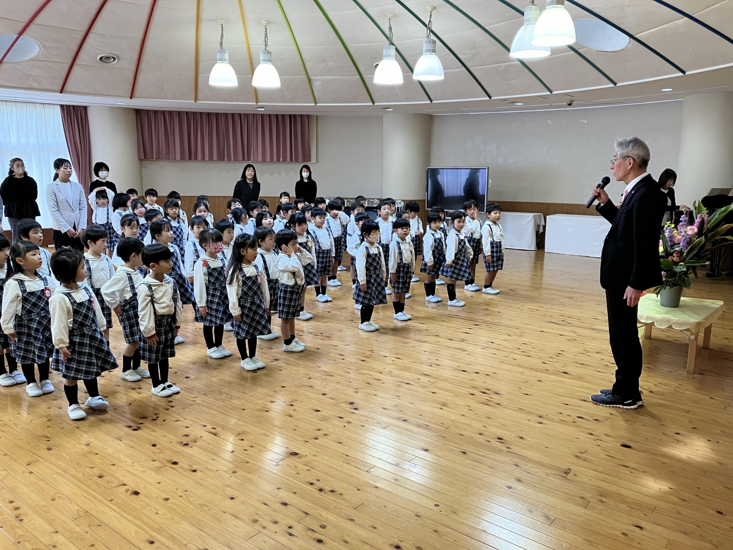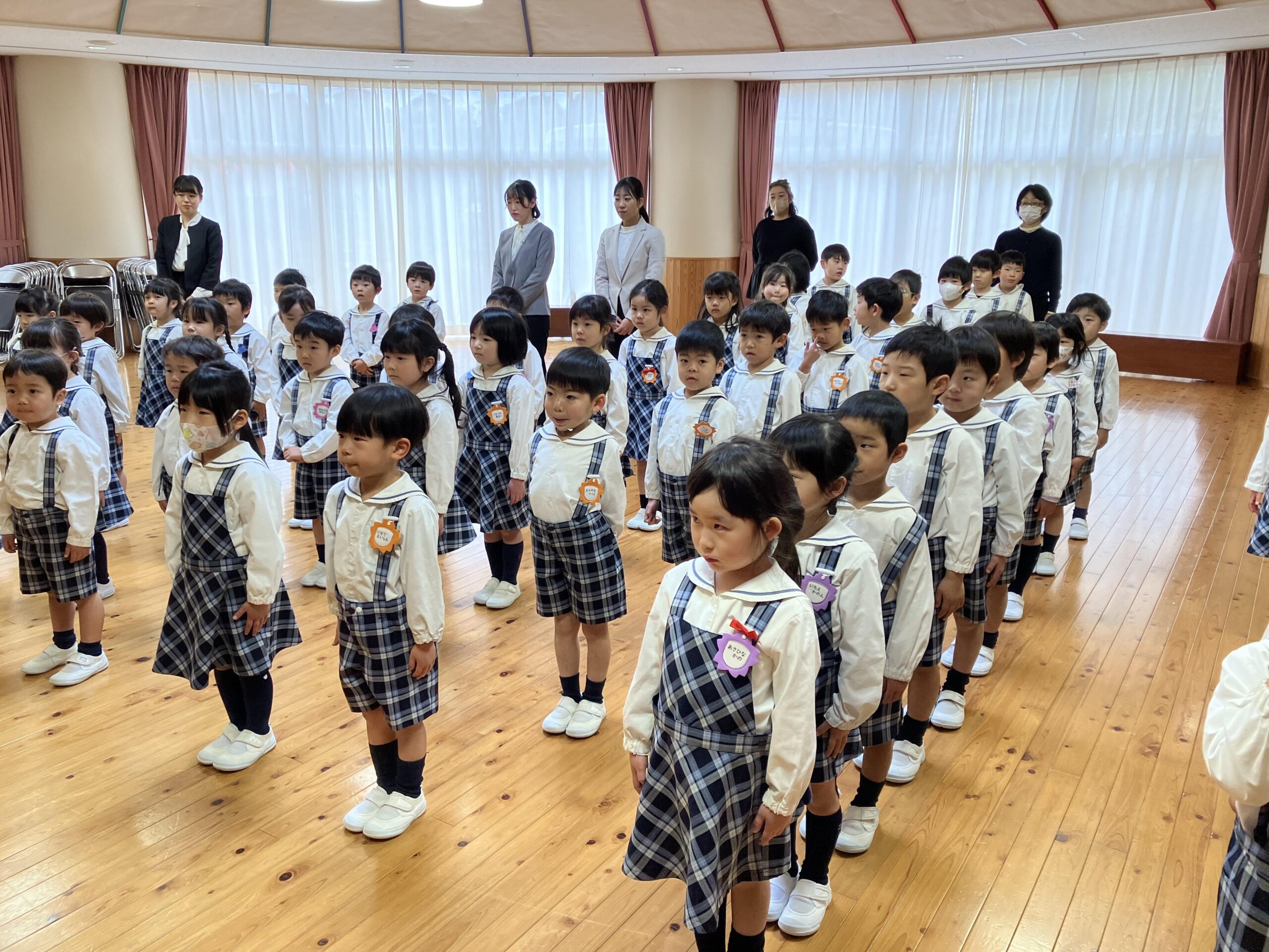 34名の年長組のお友達が卒園して、年少・年中組だけでの式となりましたが、元気にあいさつができ、良い姿勢で最後までしっかりお話が聞けて、みんなとても立派でした。