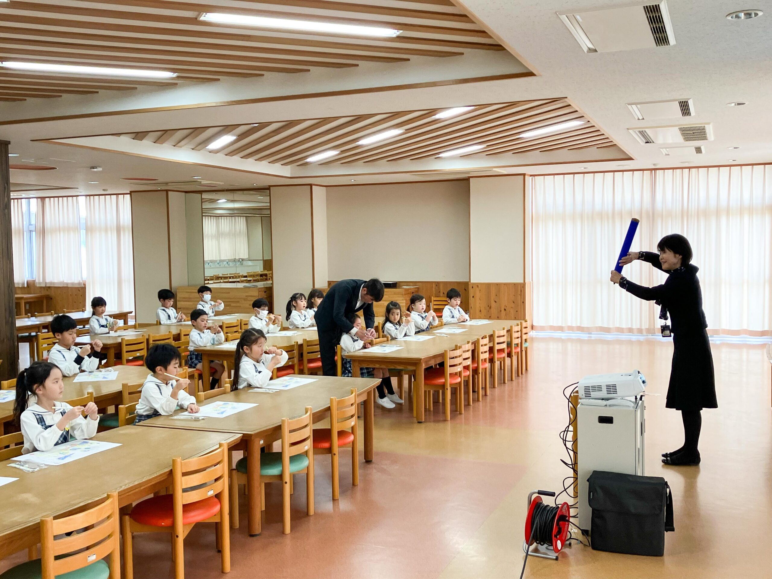 小学校へ入学する日が近づいてきた年長組の子どもたち。3月1日(金)、奈良学園小学校内にあるPMダイニングにお邪魔して、梅田真寿美校長先生から小学校の様子を教えていただきました。