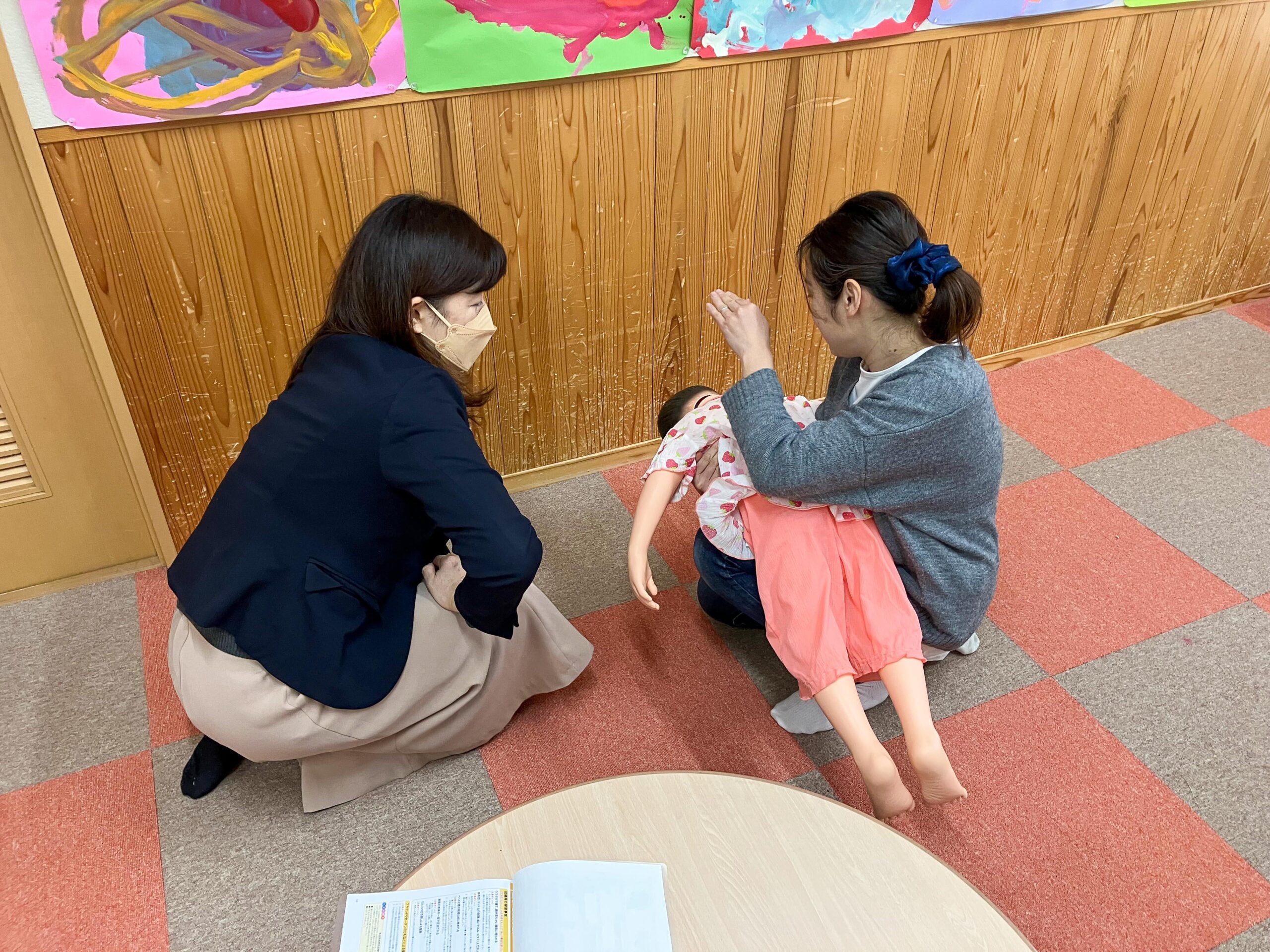 2月14日(水)いちご組の保護者対象に、子育て支援の一環として、「子どもを事故から守ろう~家庭でもしもの時どうしたらいい?~」と題し、奈良学園大学 看護学科の林文子先生に教えていただく機会を設けました。