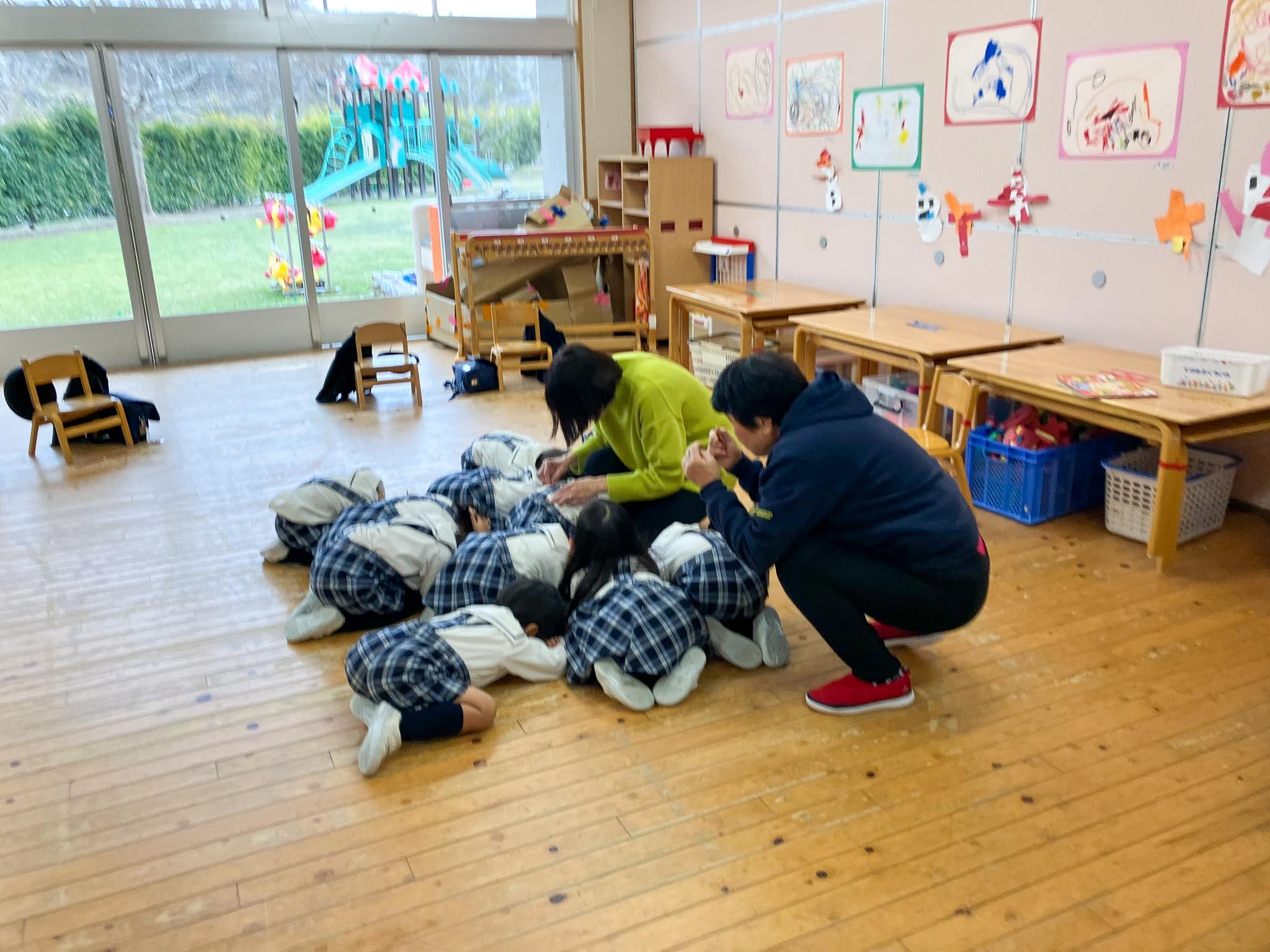 能登半島地震を受け、3学期は重点的に、地震発生直後の姿勢の取り方や、防災頭巾の使い方などを、子どもたちに指導してきました。