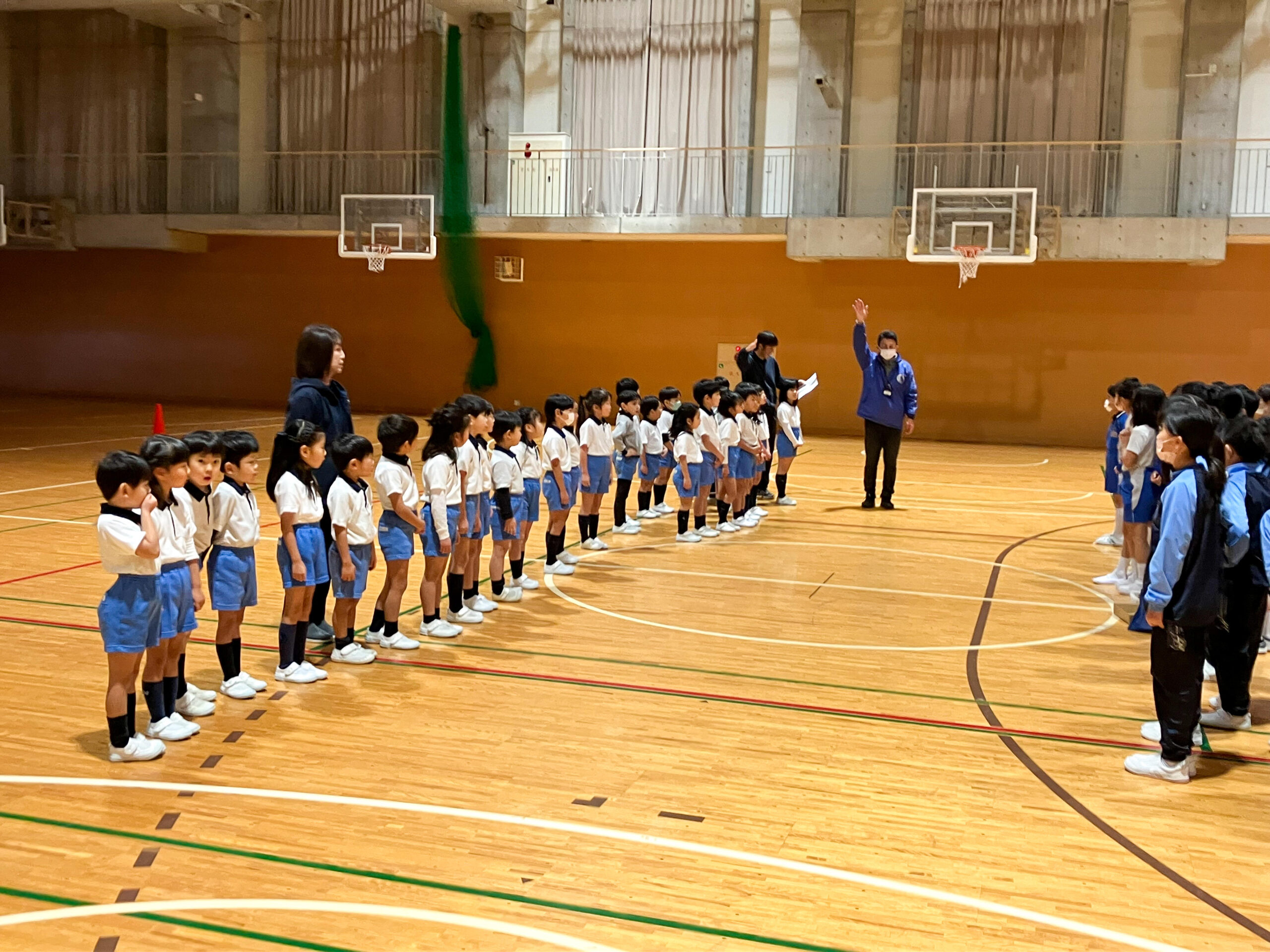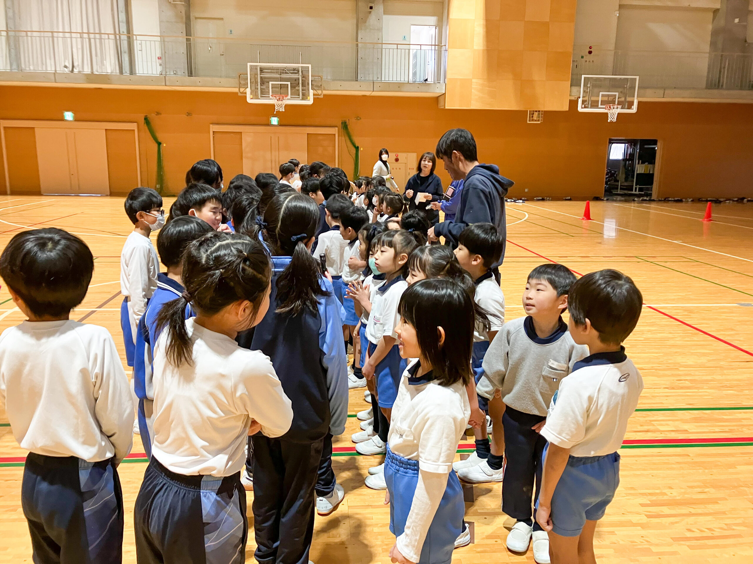 後半はゲームの時間。「ゴリラおに」を一緒に行いました。広いMY体育館を、思いっきり駆け回り、楽しく過ごすことができました。