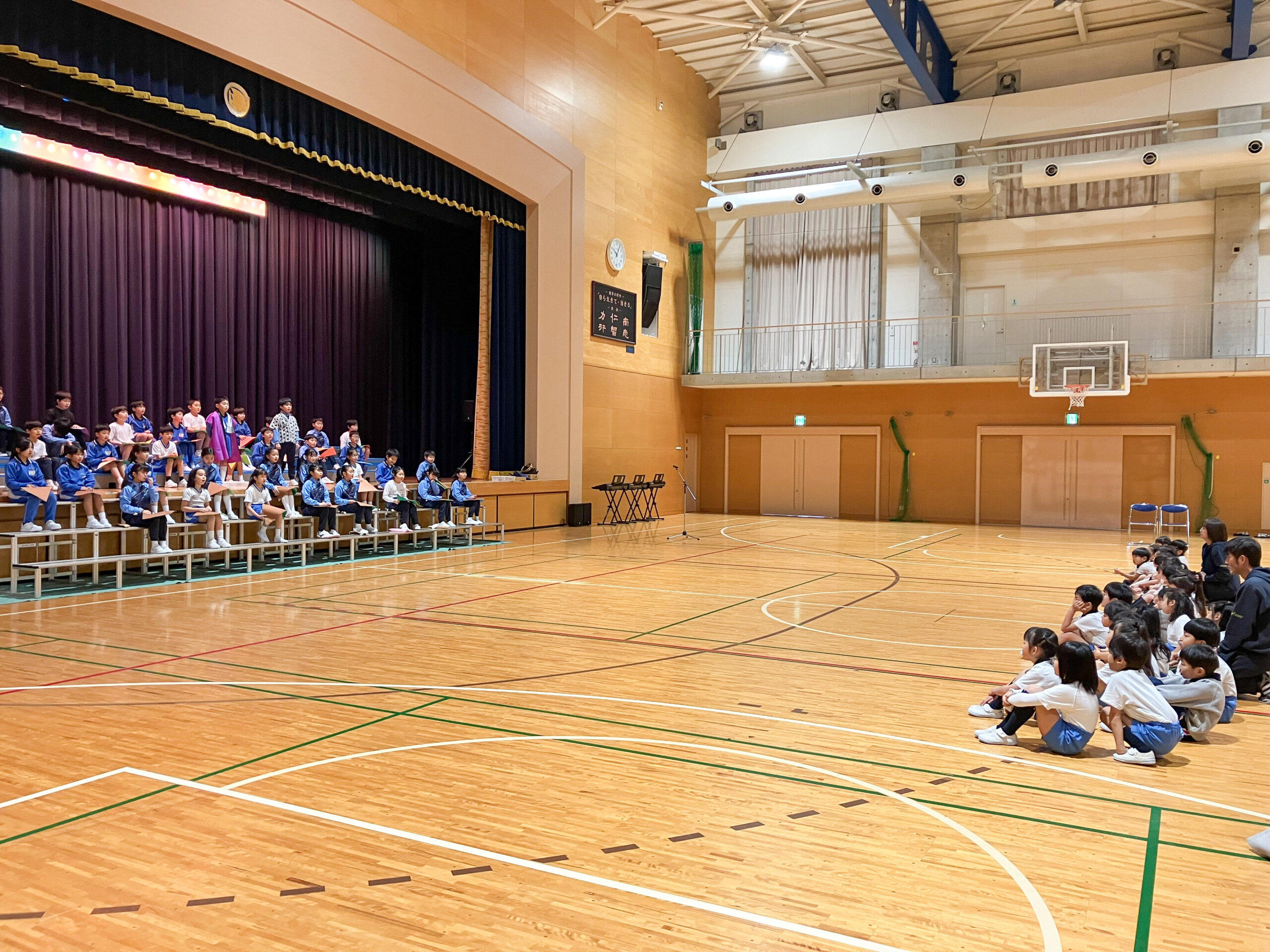前半は、P3生の発表です。尚志祭でP3生が発表することになっている、群読劇「モチモチの木」を鑑賞させてもらいました。合唱・リコーダー奏も加わった群読劇で、3年生とは思えないほどの素晴らしい発表でした。