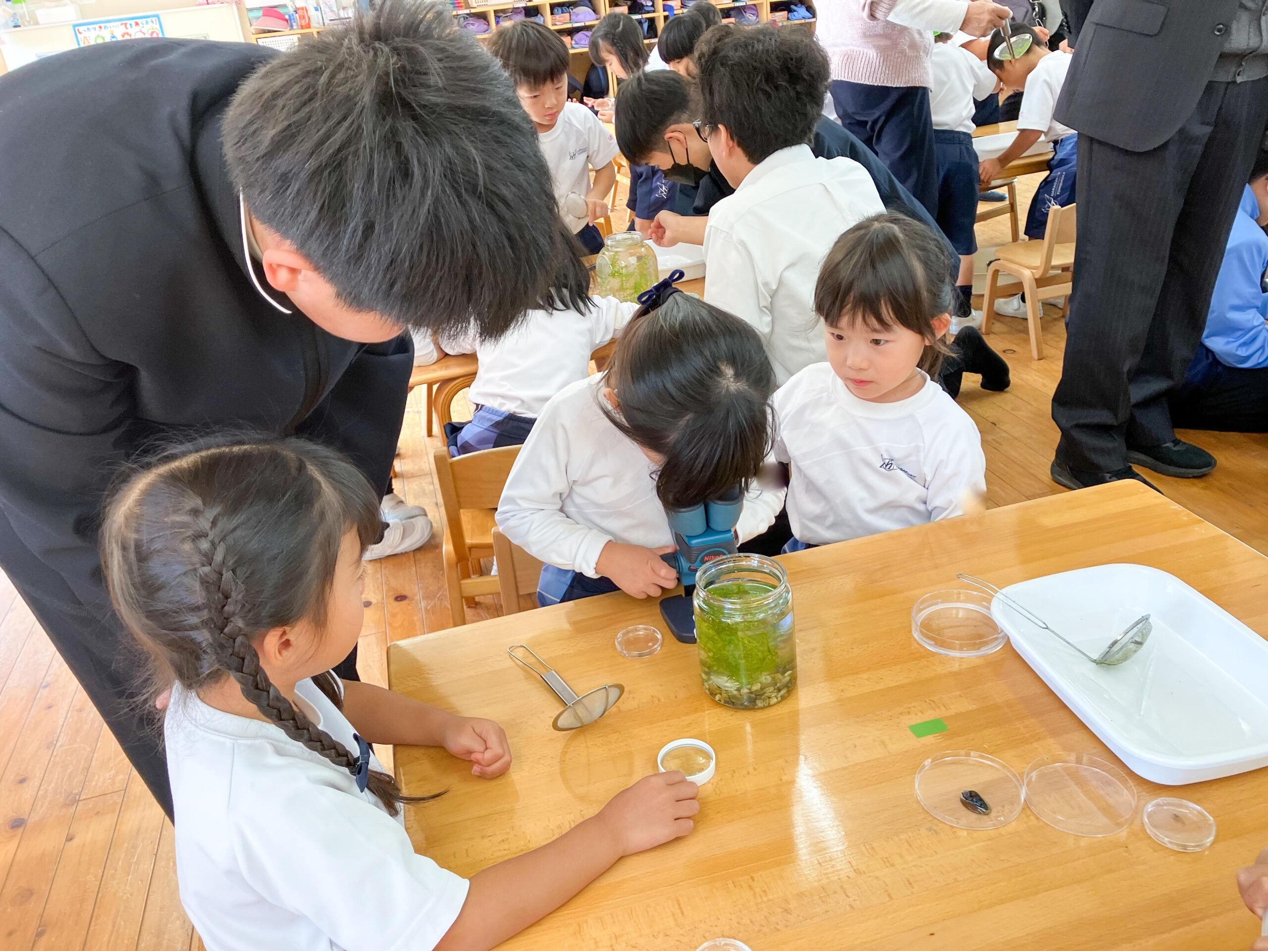 11月30日(木)年中組の子どもたちが「水中の生き物調査隊~ビオトープには何がいるかな!?~」というテーマで、水中生物の観察を行いました。