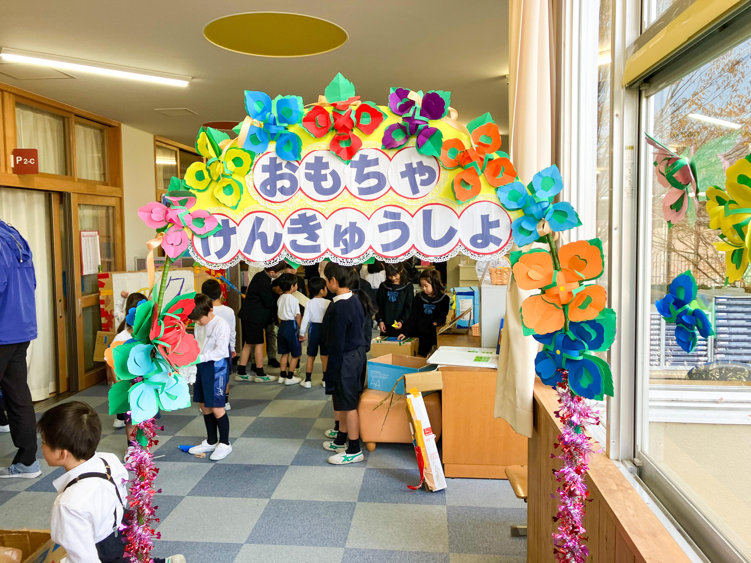 今回は「おもちゃけんきゅうしょ」に招待してもらい、園児が自由に遊びを楽しむという内容でした。