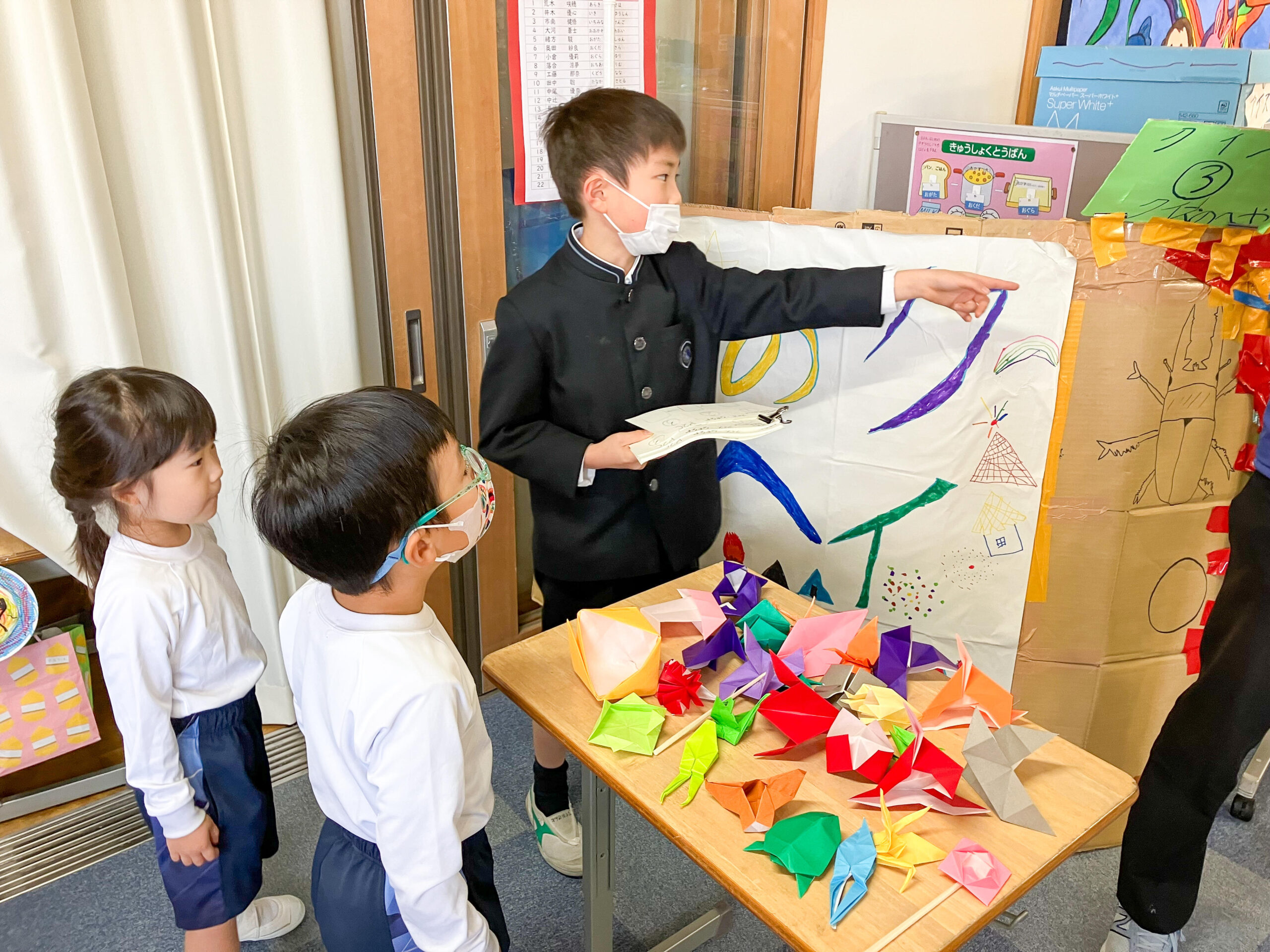11月28日(火)年中組がP2生と、小学校の教室で交流会を行いました。