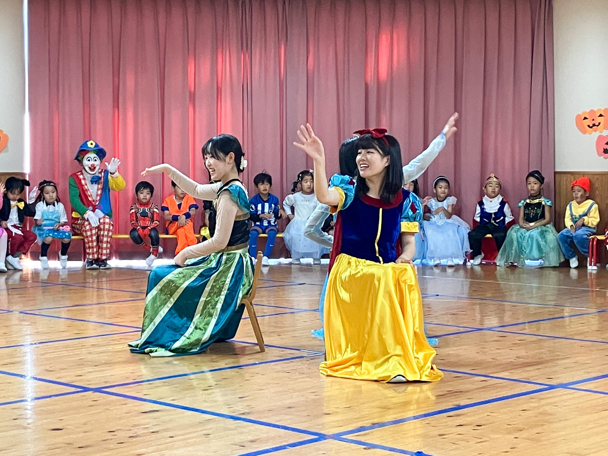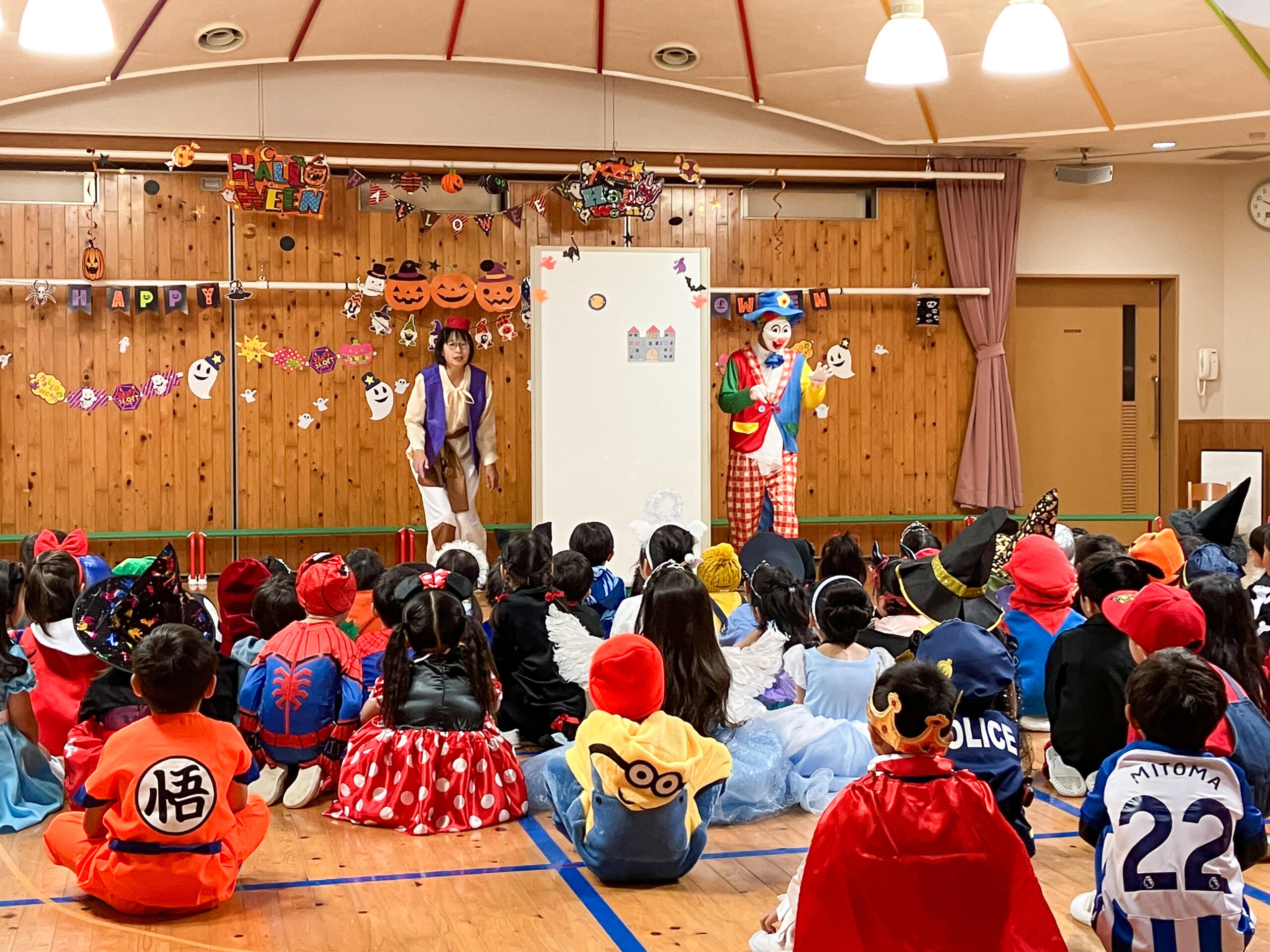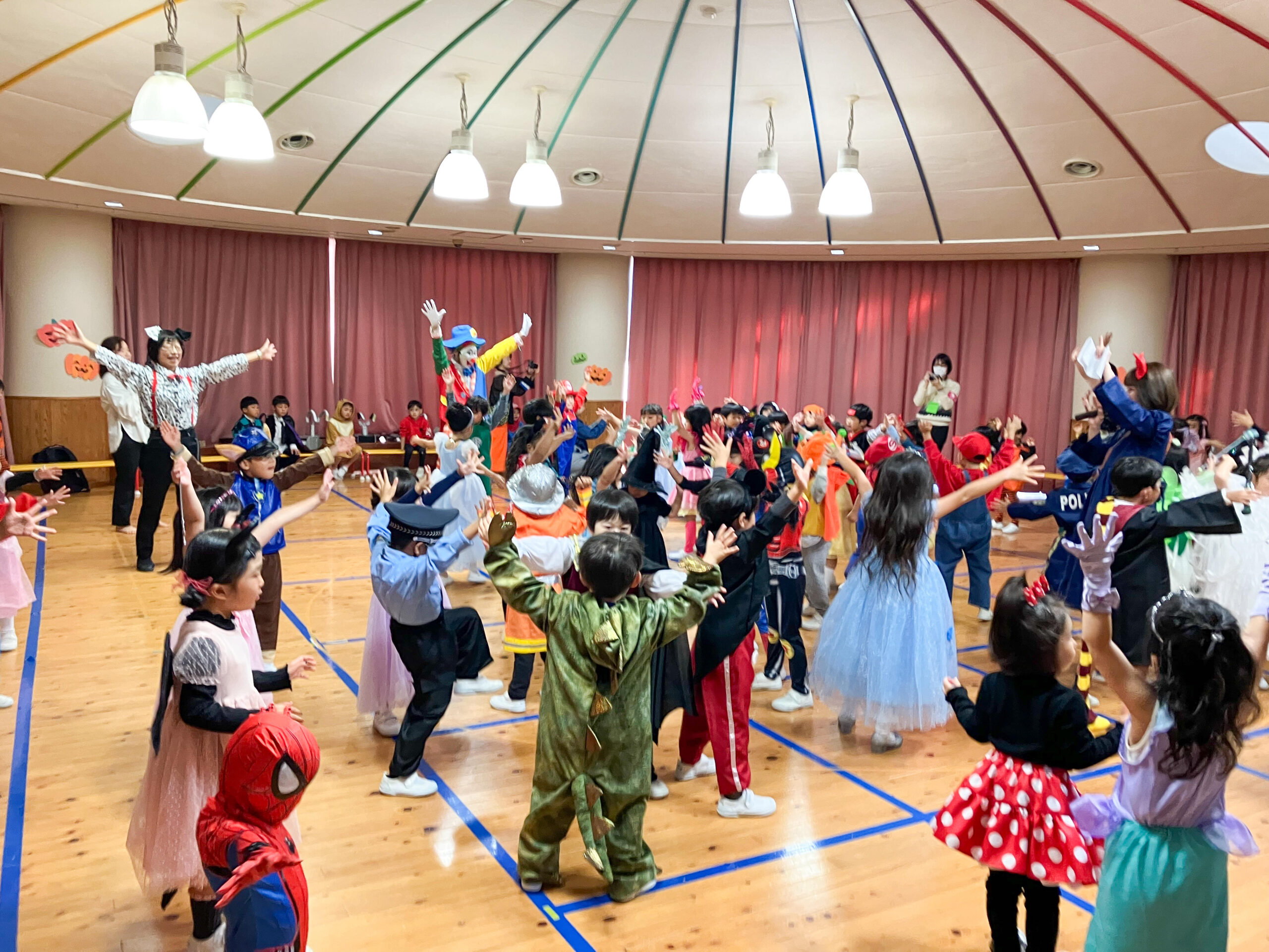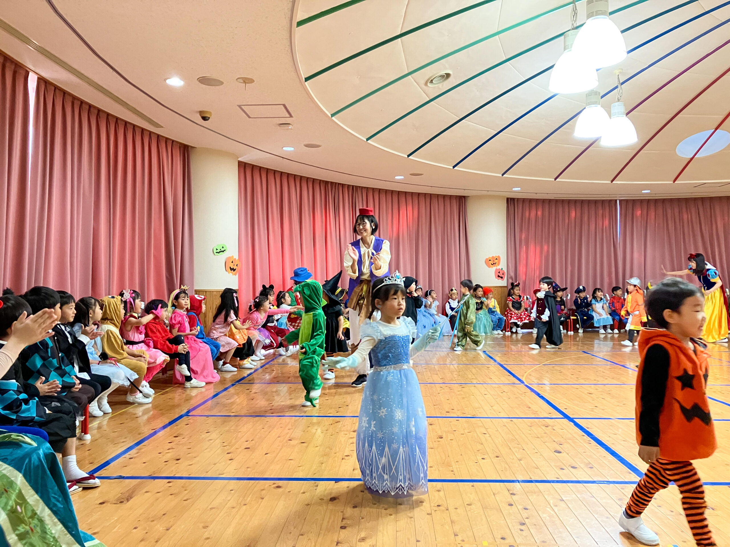 幼稚園でハロウィンパーティーを開きました。思い思いの衣装で登園してきた子どもたち。先生方も負けないようなコスチュームでお出迎えしました。