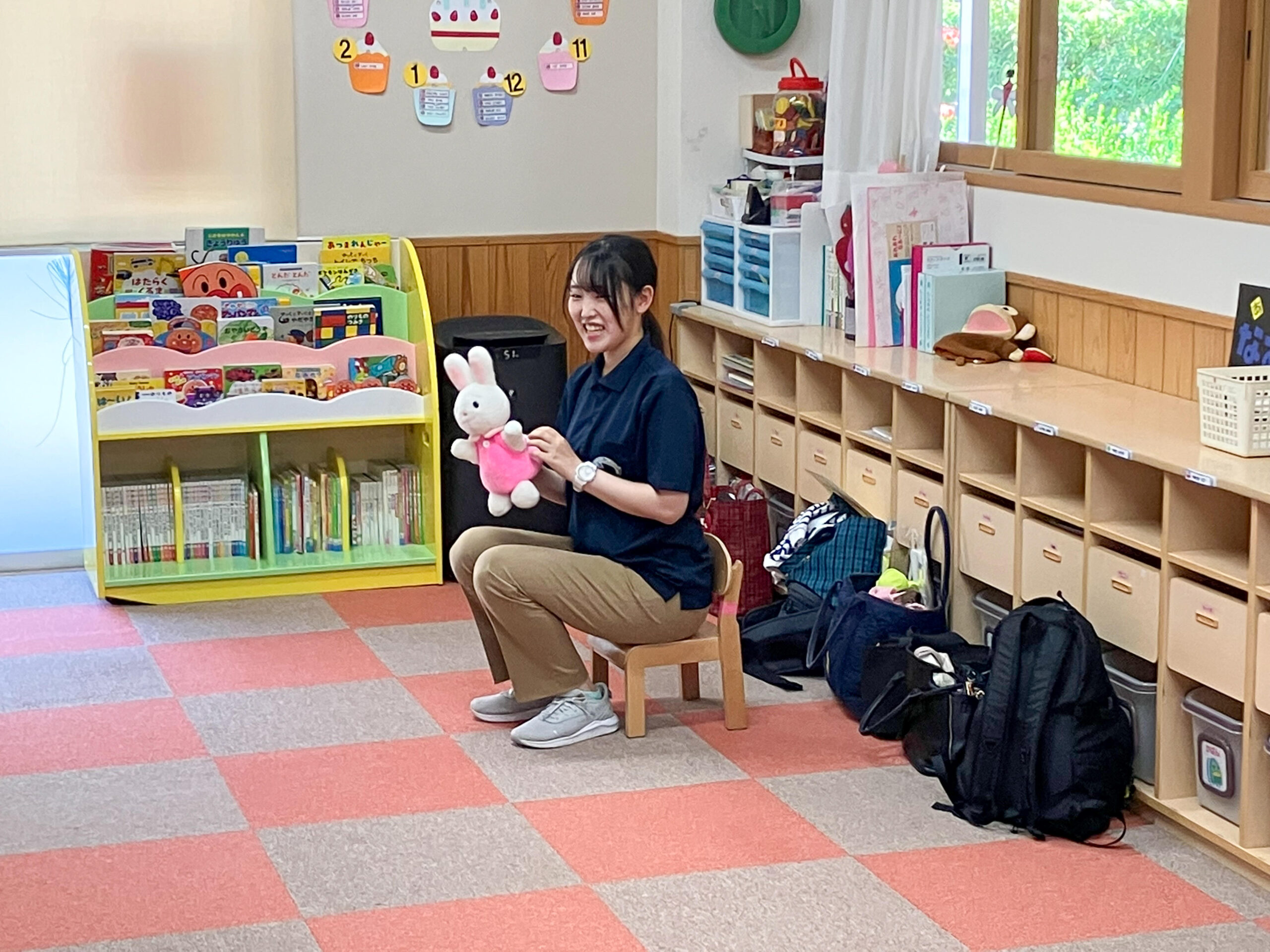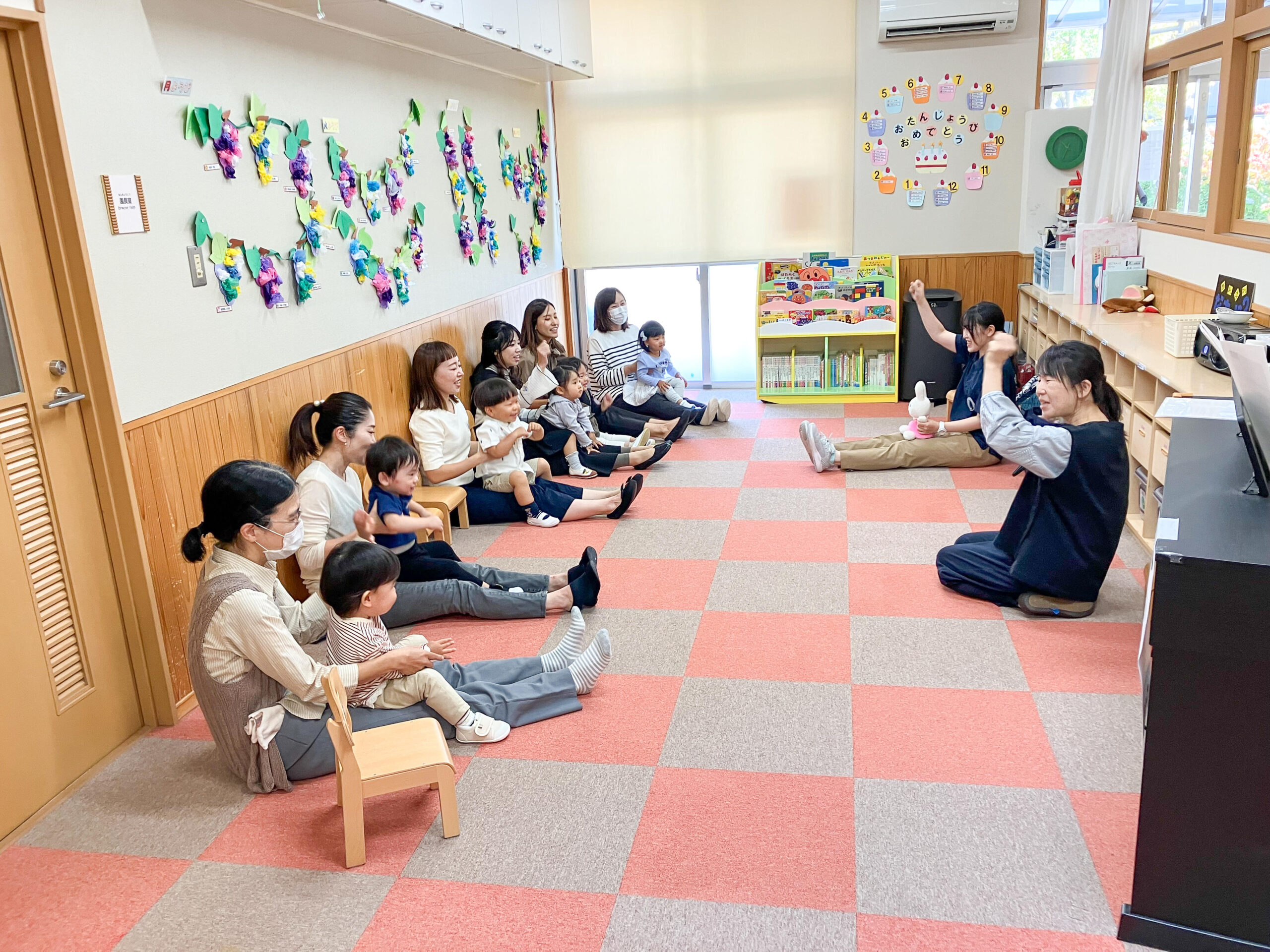 笑顔がすてきなお友達と、歌を歌ったり手拍子をしたり、体を動かしたりして、約1時間楽しく過ごすことができ、嬉しかったです。