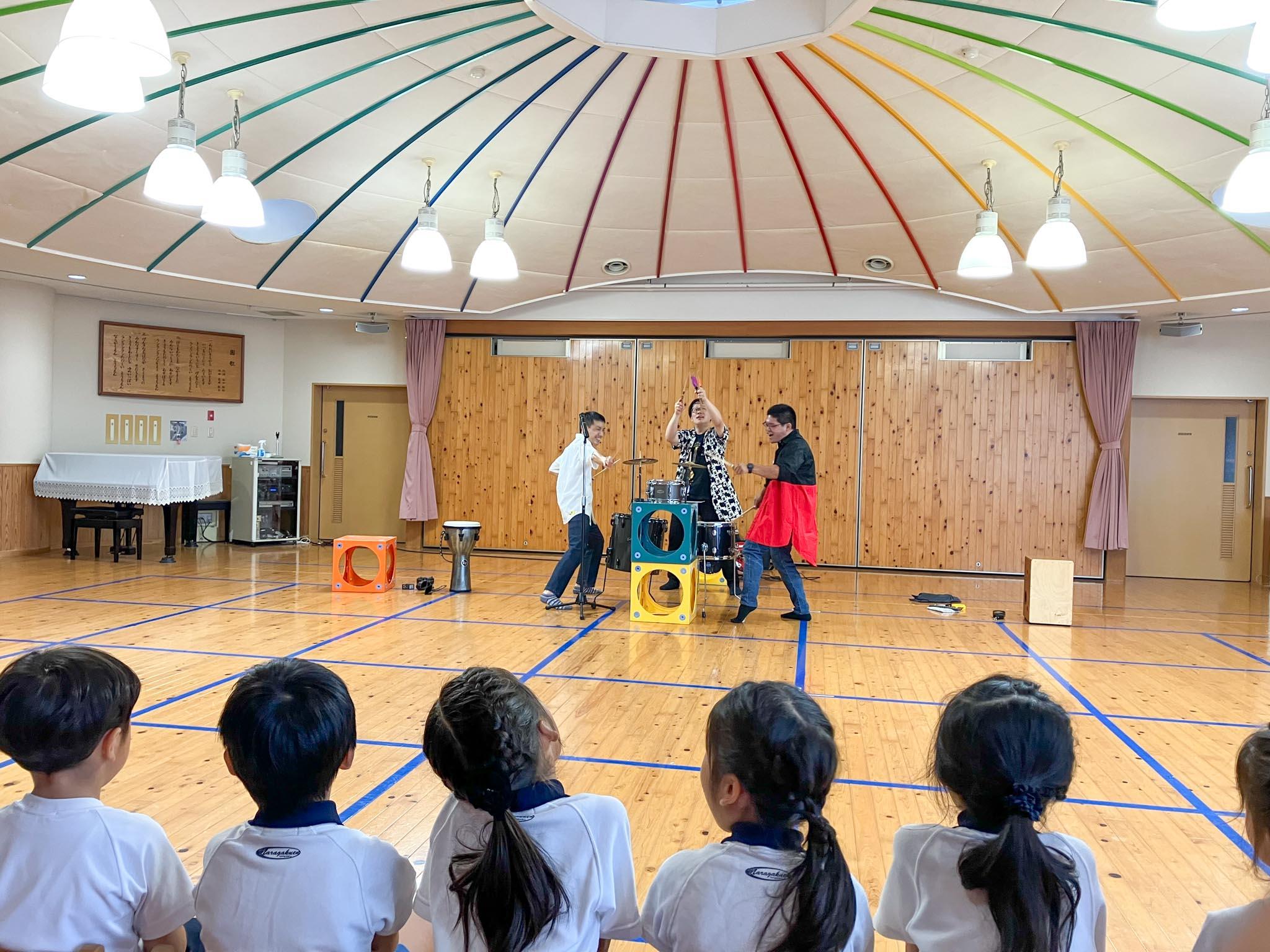 9月19日(火)「ドラム演奏で遊ぼう」と題したミニコンサートを、遊戯室で行いました。