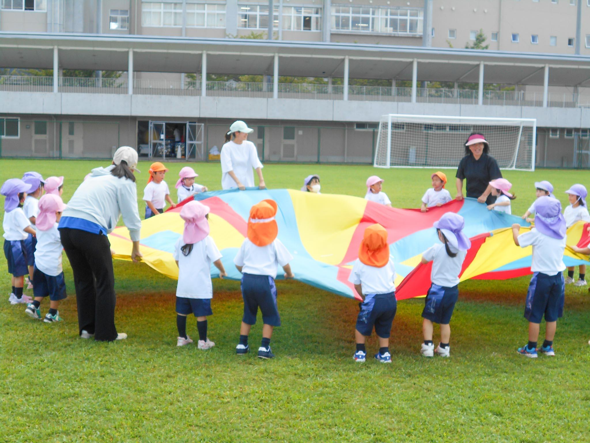 みんなでバルーン練習! 2023.09.14(木) Post 9月13日(水)午後から総合グラウンドに行って、全園児でバルーンの練習をしました。 29日(金)開催の合同運動会で、幼稚園からのプログラムとして演技を披露する予定です。 総合グラウンドを使っての練習は、昨日に続いて2日目になります。暑い中でしたが、集中して練習していたので、回数を重ねるたびに上達していくのがよくわかりました。 合同運動会本番の演技が、今からとても楽しみです! « 9月お誕生日会 敬老の日の参観 »