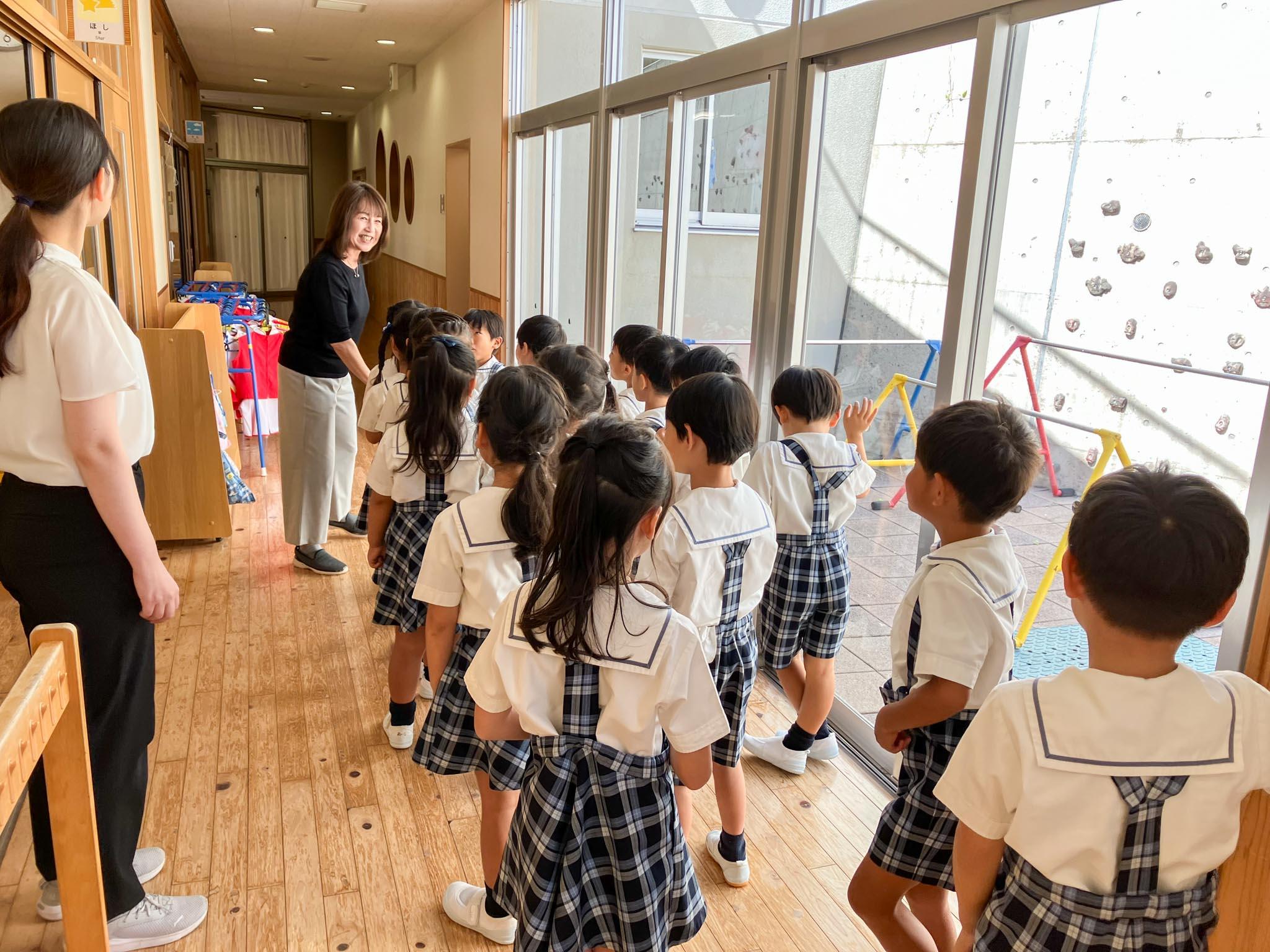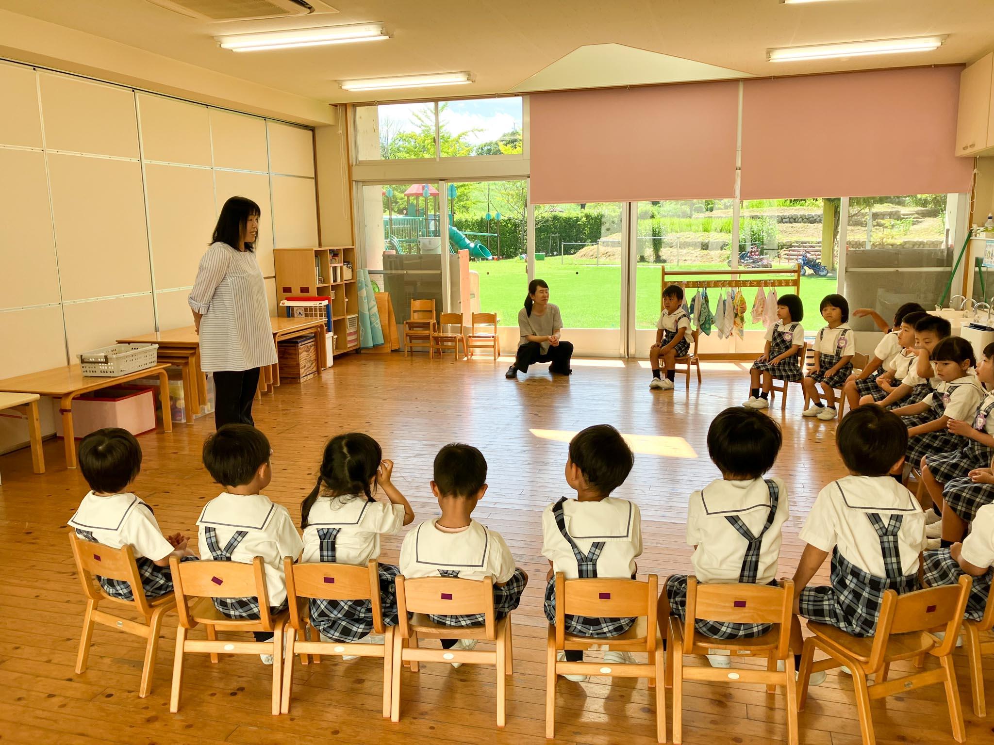 10時頃から遊戯室に全園児が集まり、2学期始業式を行いました。「おはようございます」のあいさつは元気いっぱい。姿勢よく、先生のお話しを最後まで集中して聞くことができました。礼もしっかりそろいました。100点満点の子どもたちの姿を見て、2学期がますます楽しみになりました!