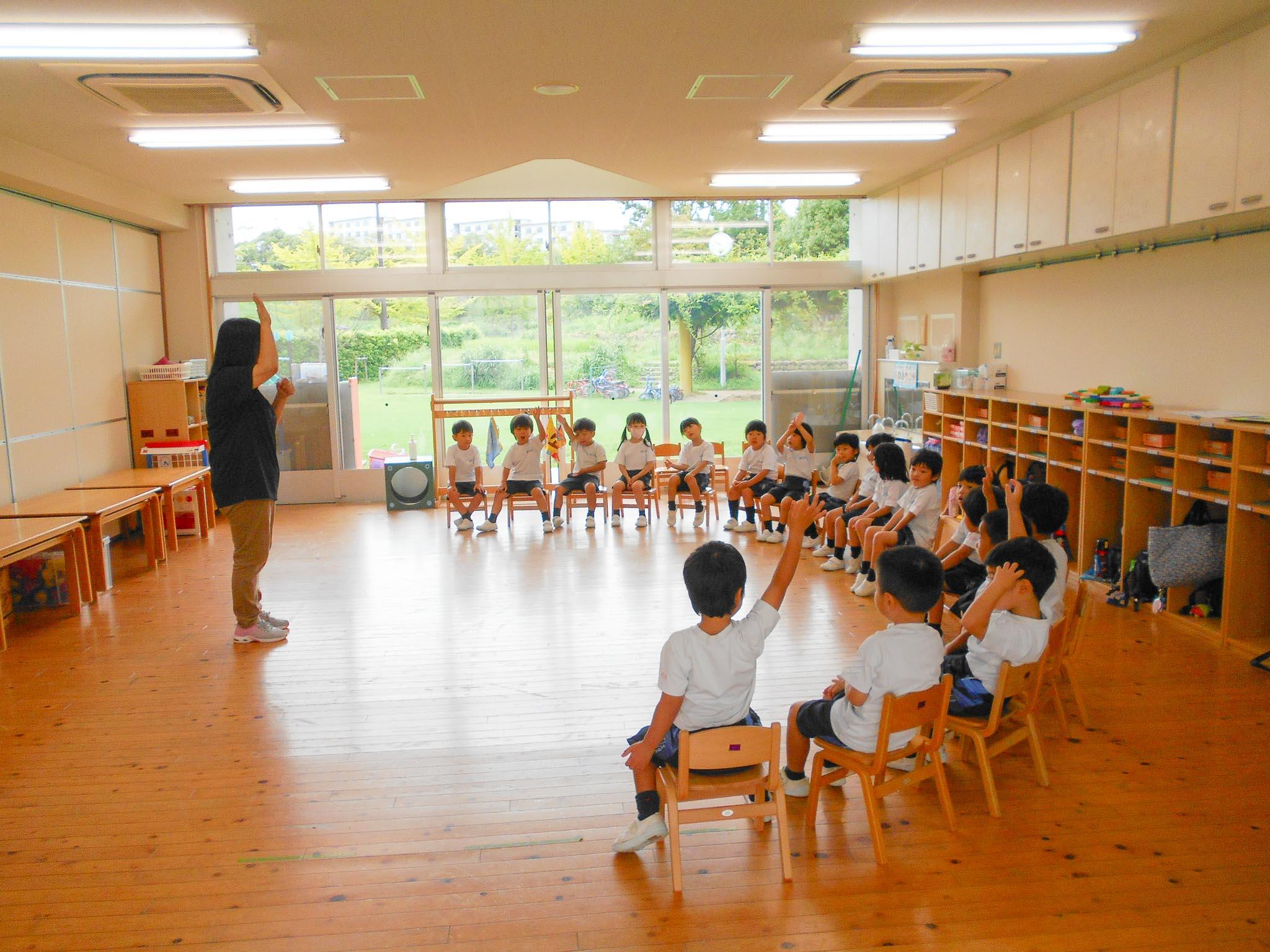 年中・年長組の子どもたちは、9月に行う合同運動会に向けて、遊戯室でバルーンを楽しみました。先に楽しみたい気持ちを抑えて、年中組に「お先にどうぞ」と譲ってあげた年長組の優しさ。年中組の子どもたちも「ありがとう」とお礼が言えました。温かな気持ちが伝わる瞬間です。25日も楽しく充実した時間を過ごしたいと思います。