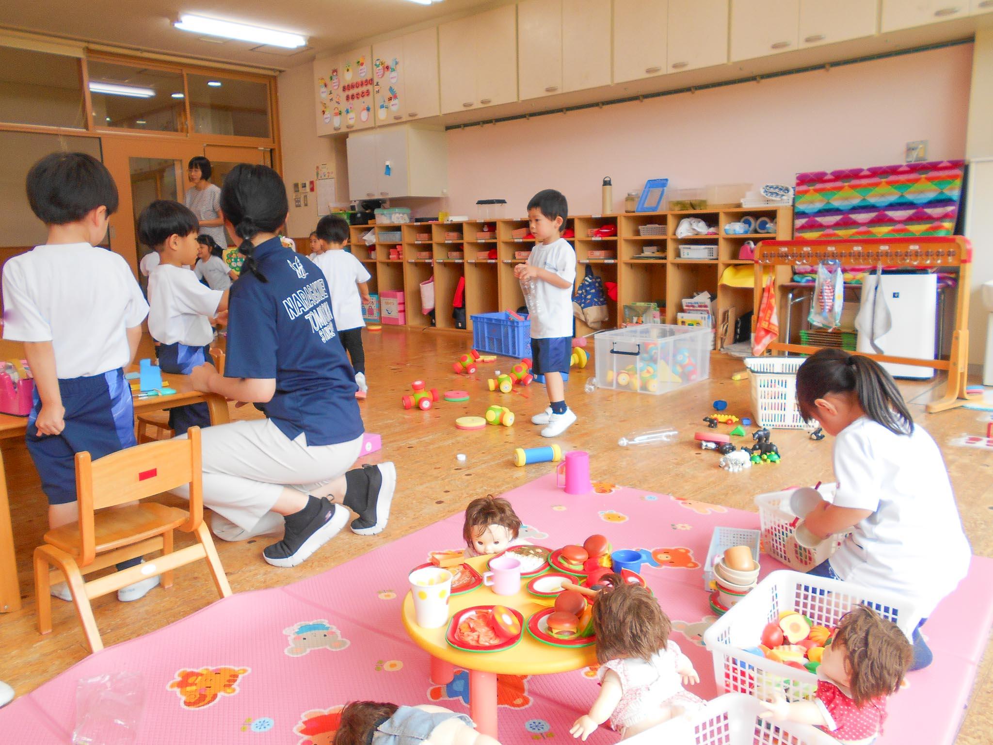久しぶりにお友達や先生に会えて、うれしそうな子どもたち。教室で好きな遊びを楽しんだり、歌を歌ったり・・・。9月の新学期に向けて、助走期間となる大切な2日間です。
