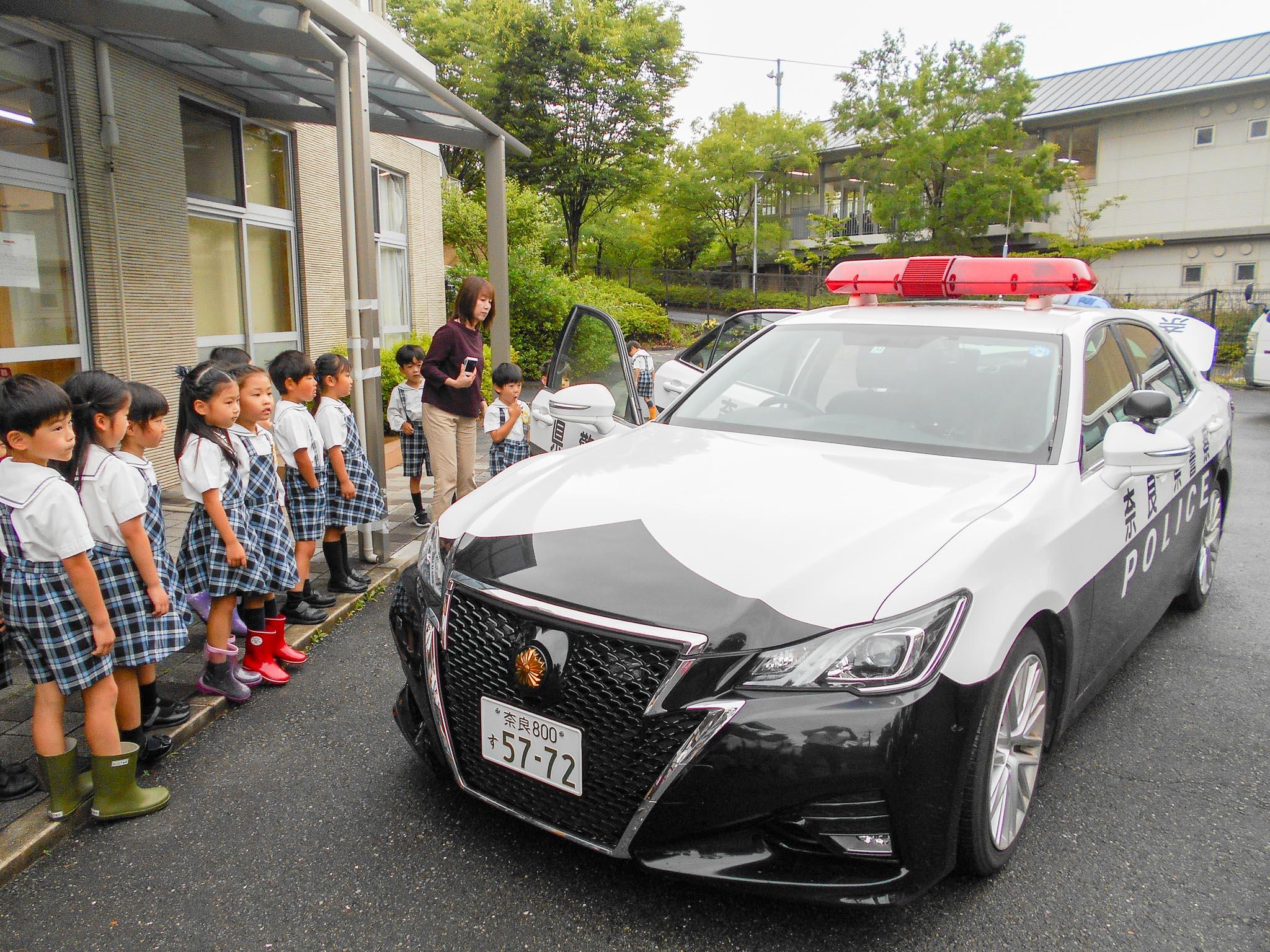 また、歩行体験を待つ間に、乗ってこられたパトカーを見せていただきました。