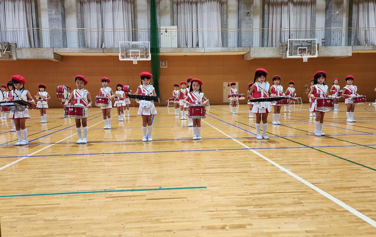 保護者の方からも、「子ども達の三年間の育ちが見られて、凜々しく格好いい姿に感動しました。」と感想をいただきました。年少組は、「しまじろうの曲」でも可愛いセーラーカラーを着て「なんて可愛らしいの!」と思うダンスを見せてくれました。年中組は、マーチングのフラッグはもちろん『サチアレ』の曲で手袋ダンスもなかなかしっかりした面持ちで、「あんなに幼かった子ども達がなんて凜々しい!」と感動しました。
