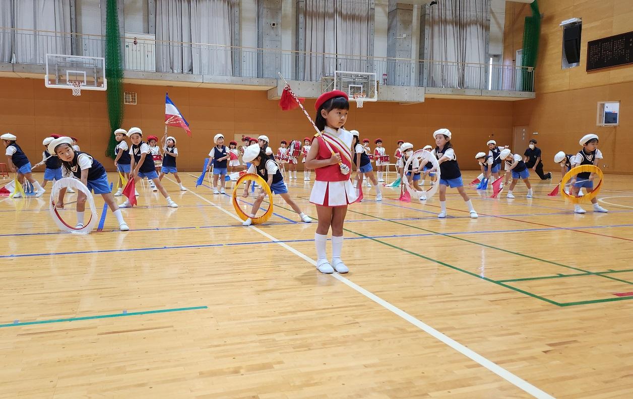 年長組は、マーチングで最高のパフォーマンスを見せた後最後に最新のパリピ孔明の「チキチキバンバン」のダンスを鳴子を手に格好良く披露しました。エンディングでは、三学年で、手を繋ぎ優しいお兄さんお姉さんに導かれながら、登場した年少さん達がとても可愛らしくて、奈良学園幼稚園の子ども達が思いやり深く育っている姿が嬉しくて感涙してしまいました。