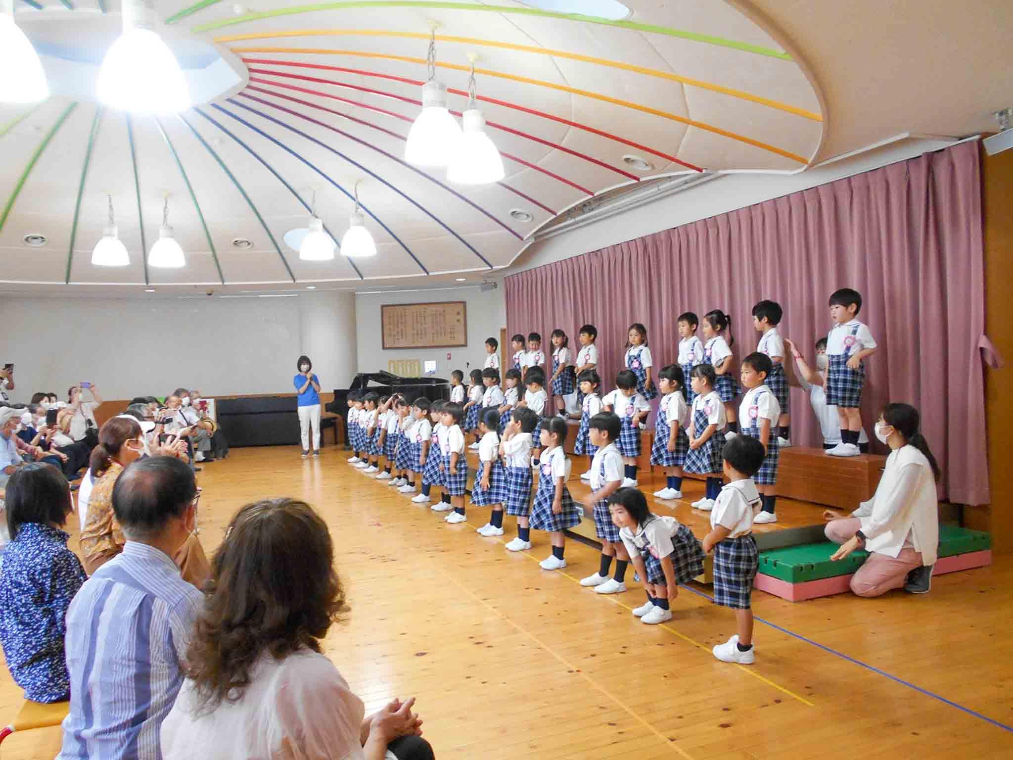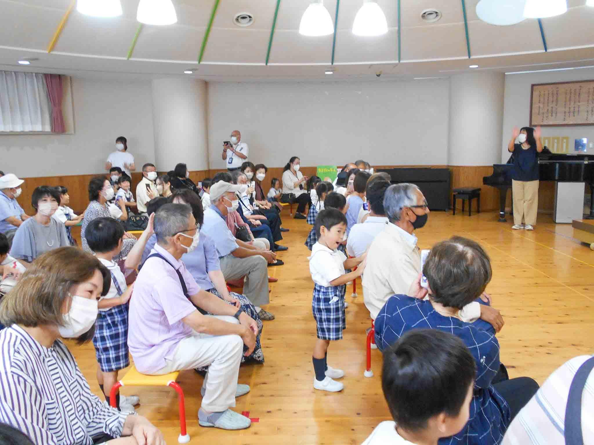コロナ前には、全学年揃って賑やかな敬老参観でしたが、今年は学年ごとにお集まりいただきました。子どもたちは日頃、なかなか会えないおじいちゃんやおばあちゃんに会えたことで受容される体験が出来ました。練習していた歌やマーチングを披露し、祖父母の皆様の温かい眼差しを浴びて可愛い笑顔を見せていました。
