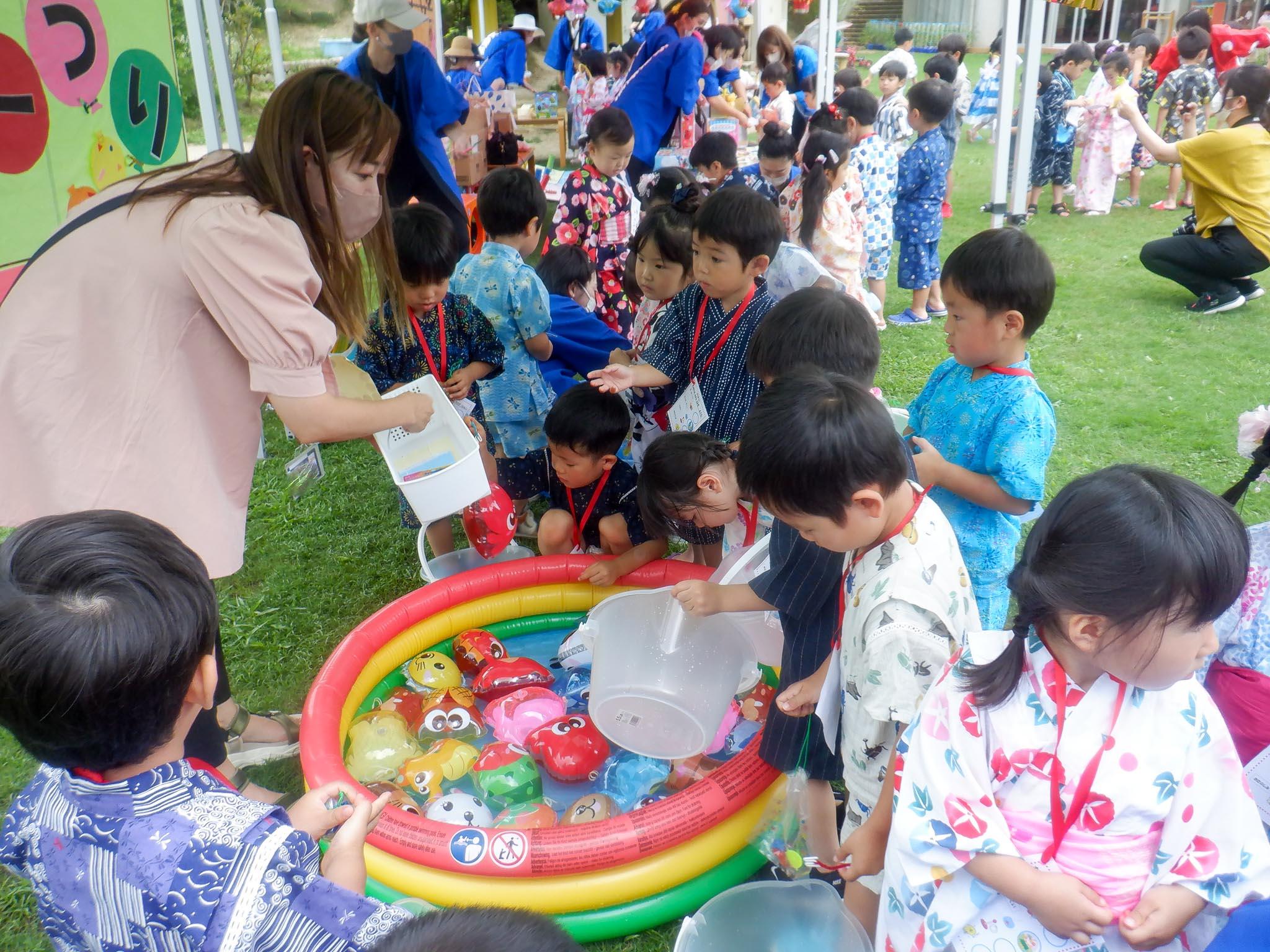 きんぎょすくい・ヨーヨー釣り・輪投げ・お楽しみくじのコーナーがあり、その場でシールを貼っていただきました。