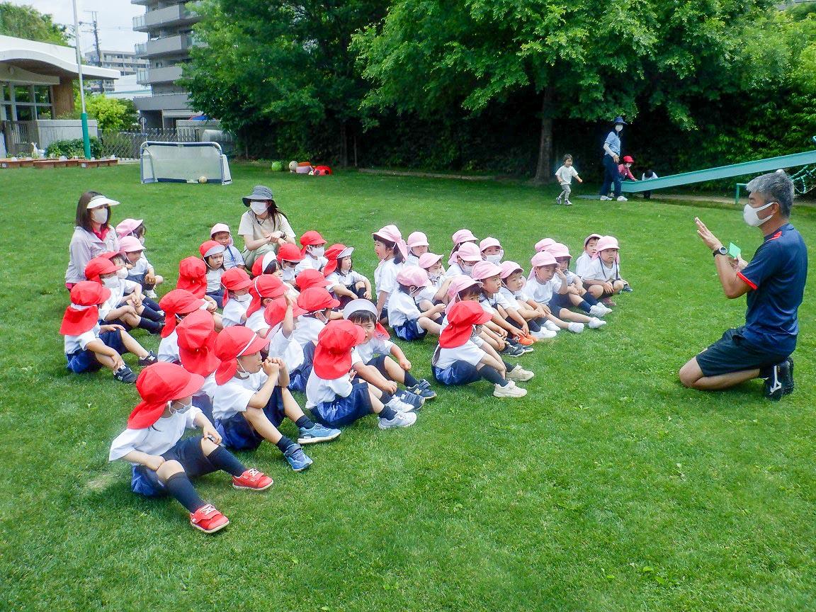 年少組さんは初めてでしたが、中高の体育の三笘先生が大好きになったようで、集合や挨拶一つ一つの先生の指示が、よくわかって行動出来ていました。