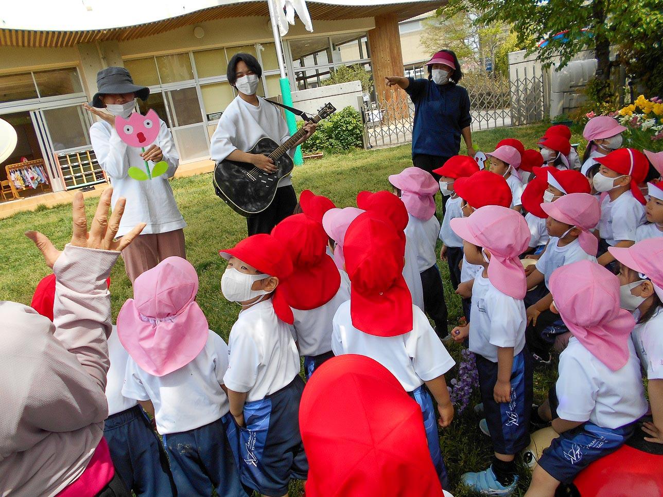 先生の弾くギターに合わせて♪チューリップあっぷっぷ♪と始まりました。