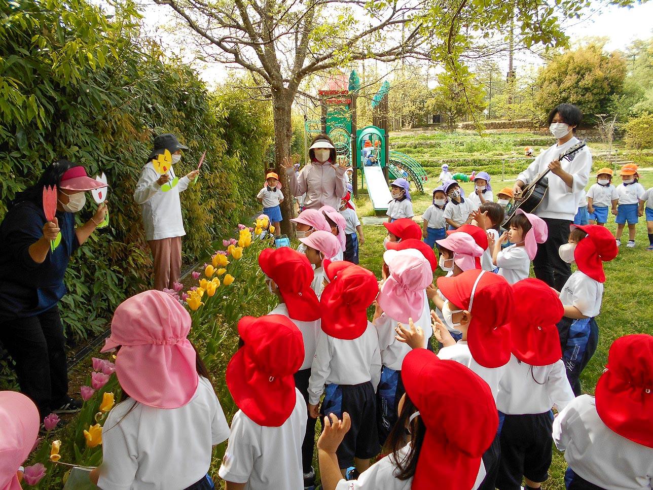 子ども達は、自分がチューリップのお花になって歌っています。