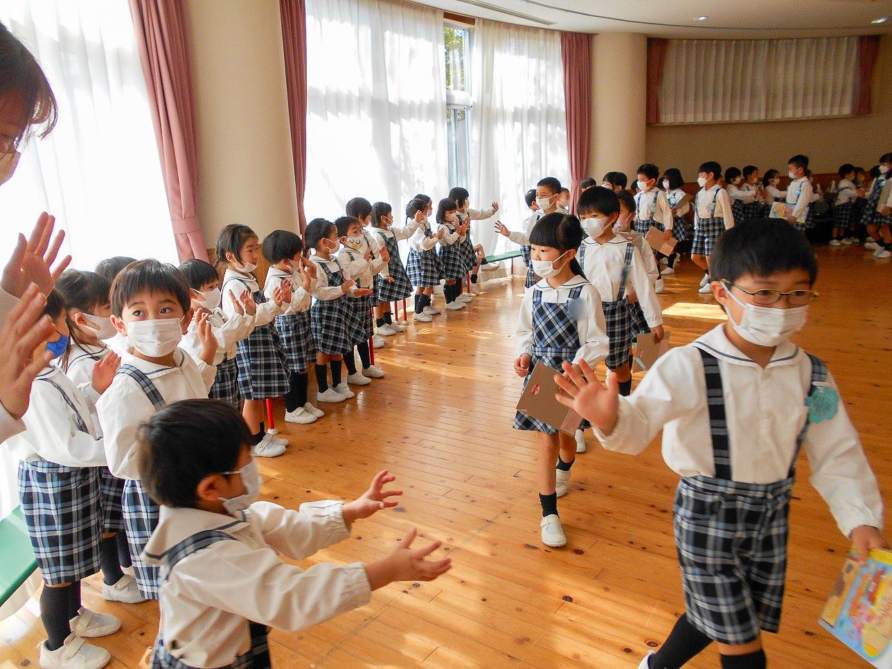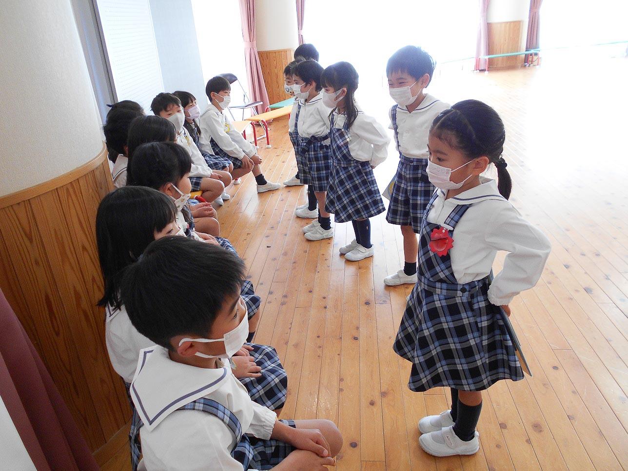 年長組の卒園や小学校入学をお祝いする気持ちと「今までありがとう」という感謝の気持ちを込めた会でしたが、年中組にとっては年長組になるための会であるし、年少組にとっては、年中組になるための会でもありました。