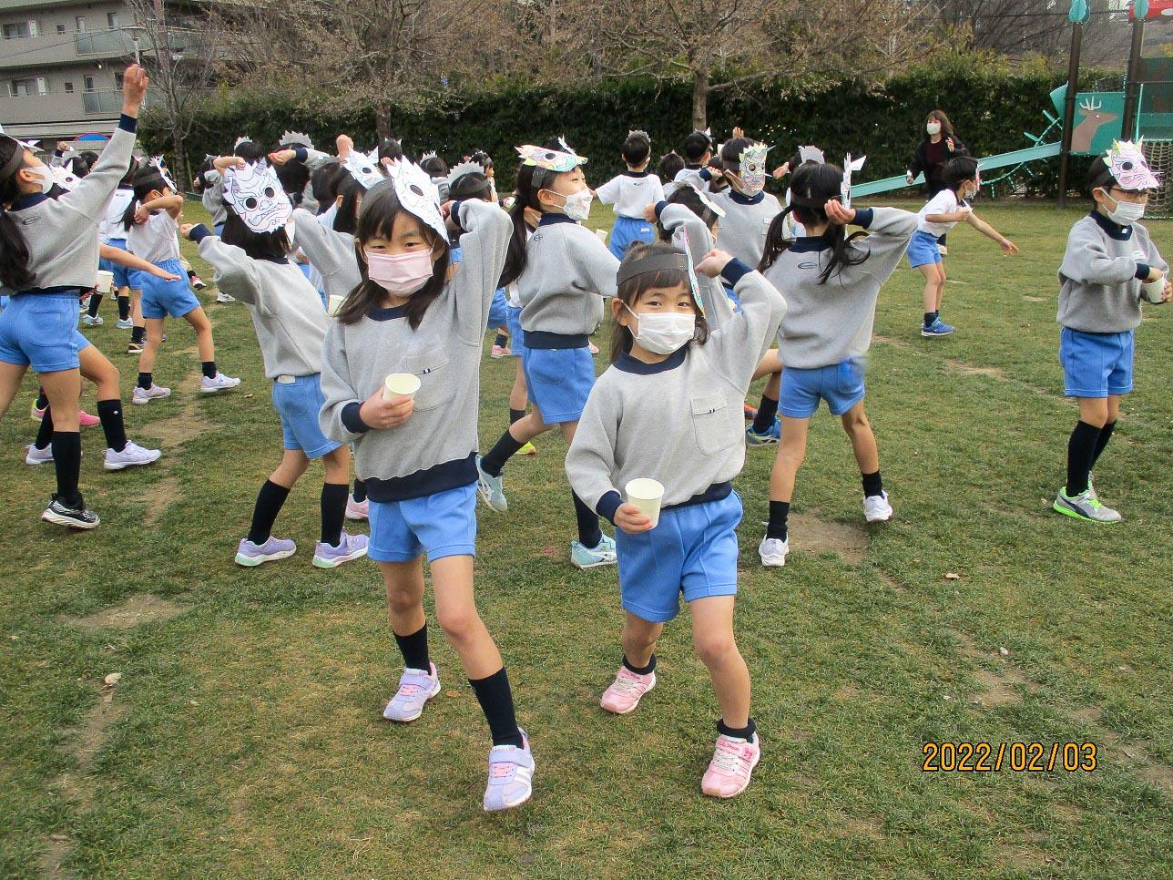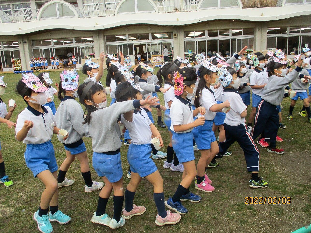 今年は、昨年にもまして新型コロナが蔓延しています。子ども達もお休みしている間、元気を持てあましていたようで、鬼の面を被って豆まきをすると元気があふれ出していました。