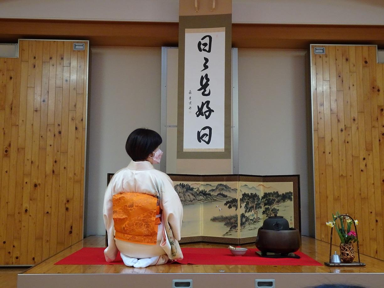 それぞれの気持ちの持ち方次第で毎日が良い日になるし、この言葉を心に留めておくことで、しんどい時にも勇気が持てるという話をしました。お花は、庭に咲いている季節の水仙と山茶花を活けて、お客様への優しい気持ちを伝えることや季節を伝えることの大切さを話しました。