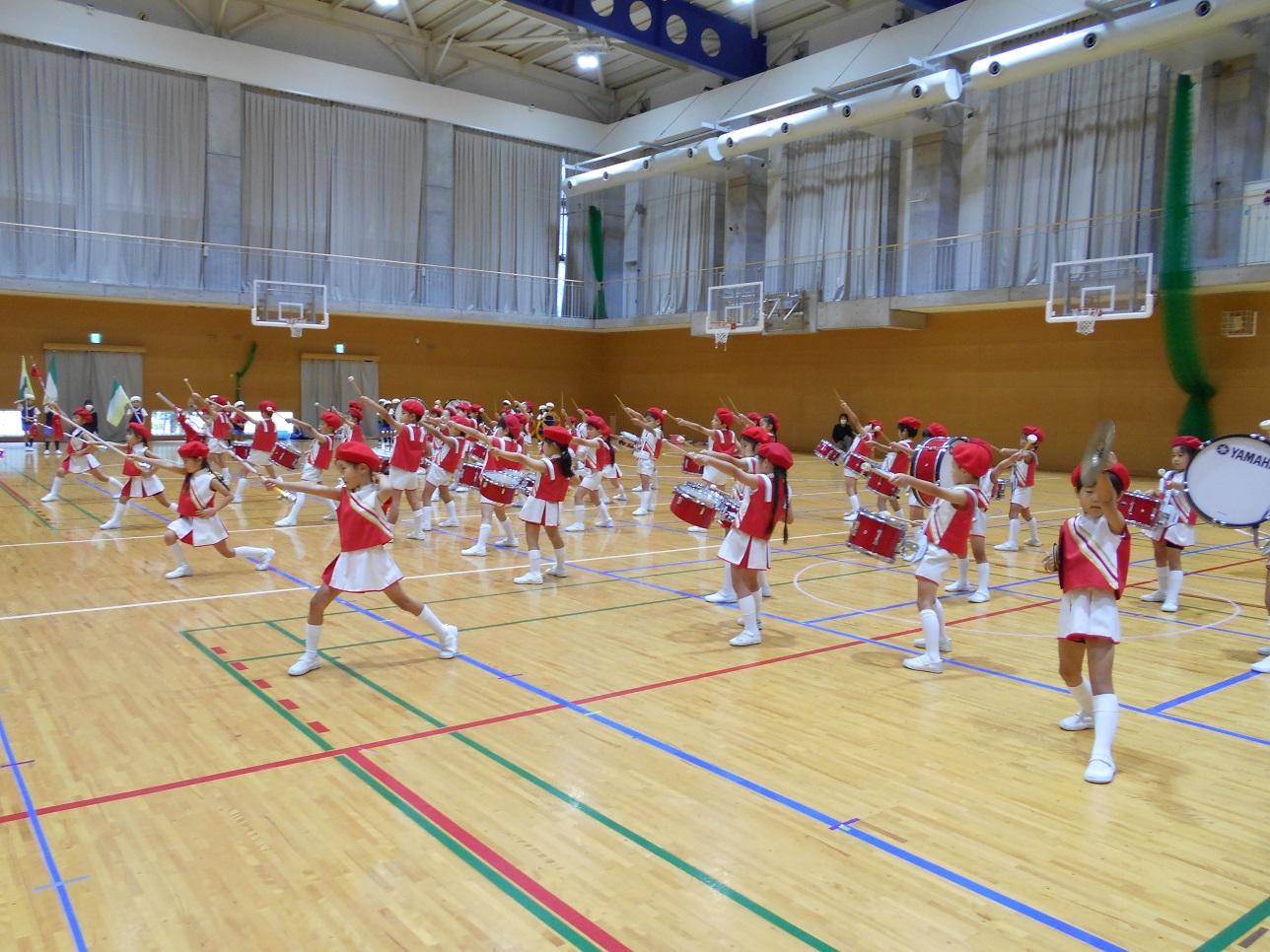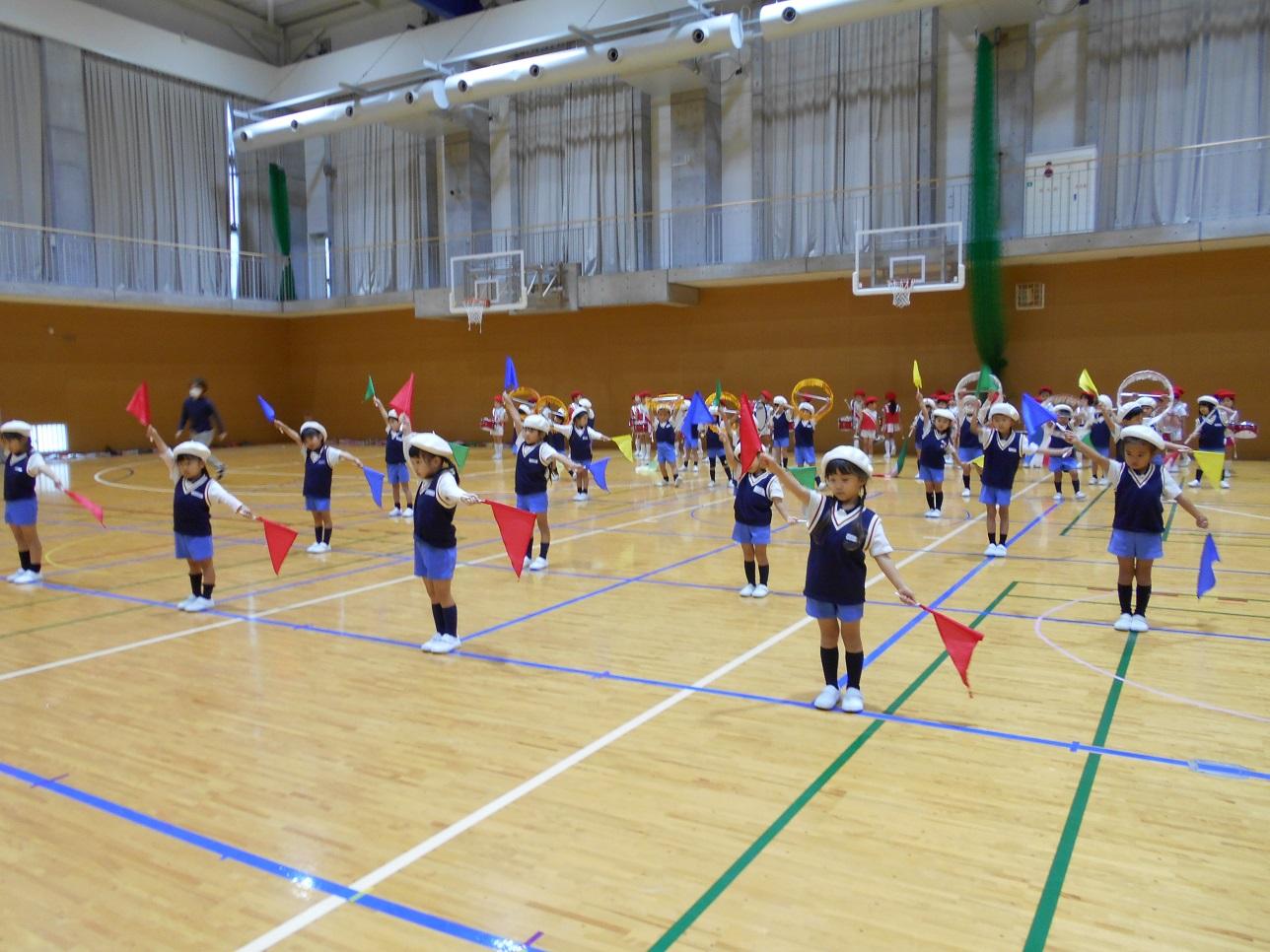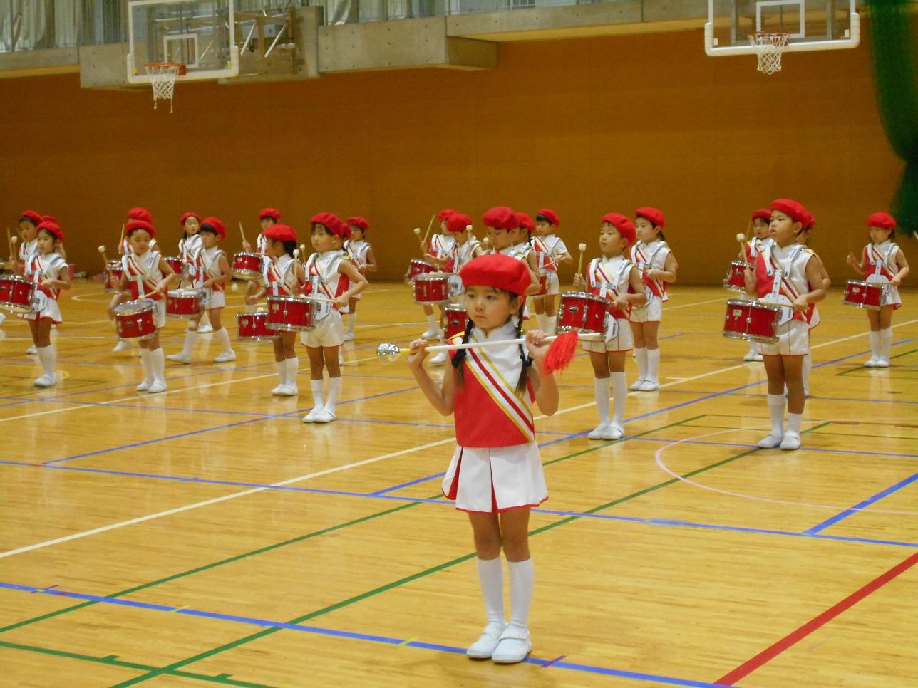 運動会の時と違うパートになって楽器や手具を持ち替えています。ほぼ一ヶ月で違うパートになったのにもかかわらずすっかりマスターしています。
