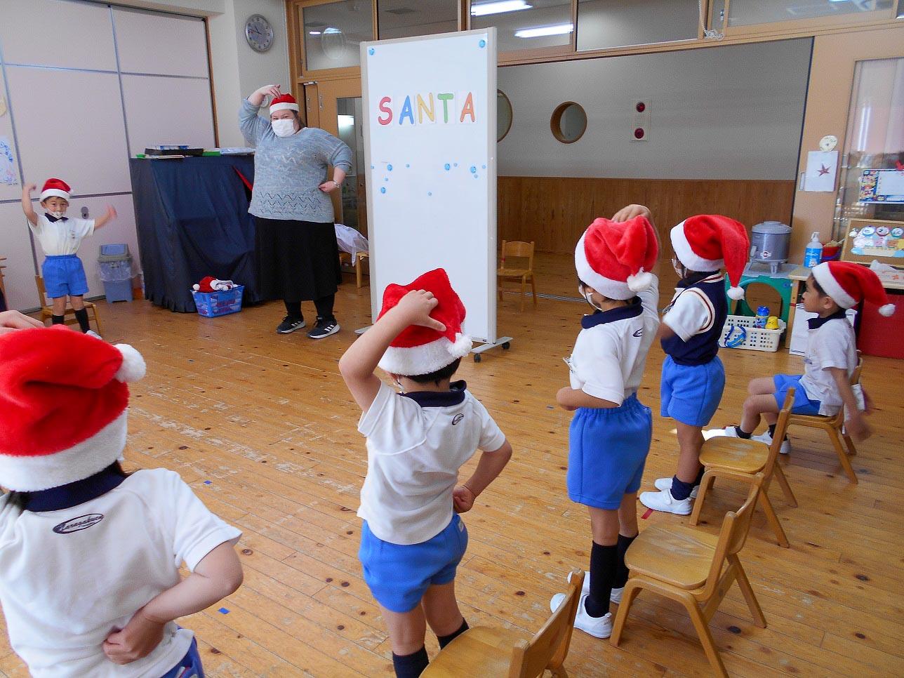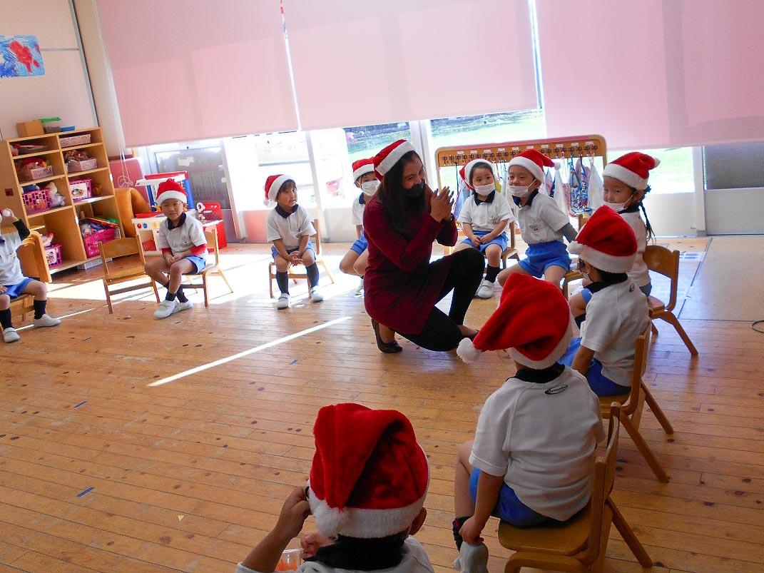 全員が、上手く「MerryX’mas」と発音できました。もちろん「Thank you」も大きな声で言えました。