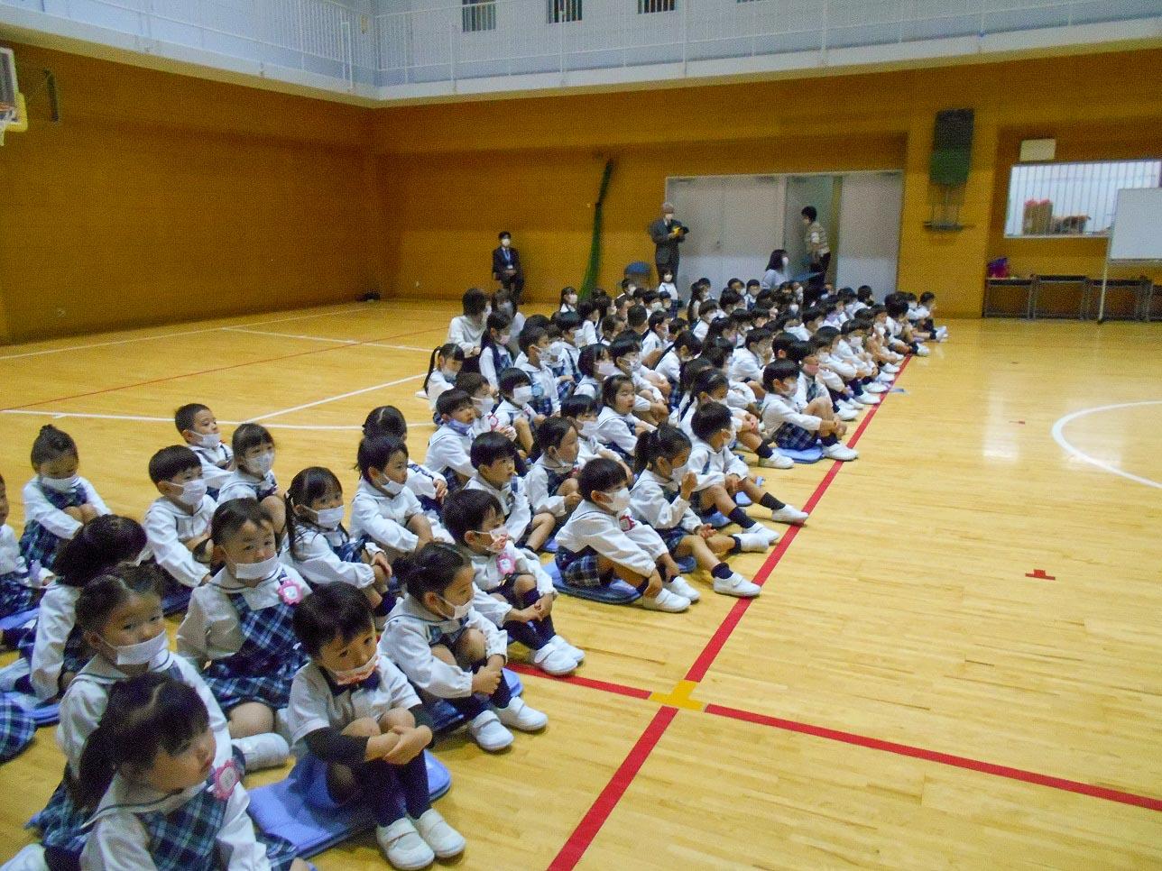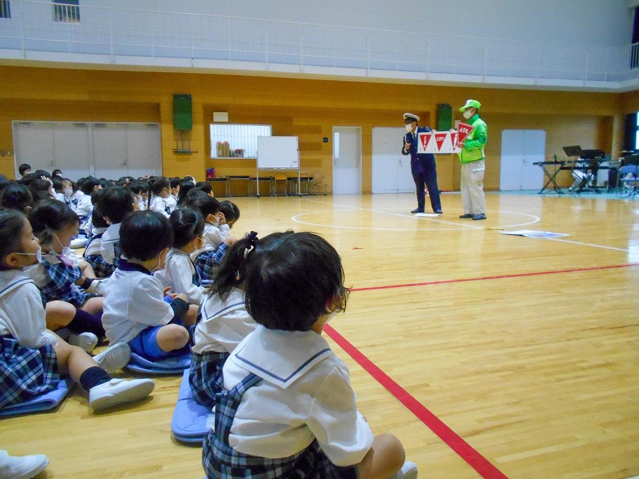 11月22日(月)、奈良西警察から交通安全と連れ去り防止のお話をしていただきました。その後、奈良県警の音楽隊の演奏を聴かせていただきました。