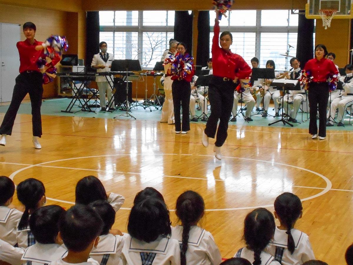 音楽だけでは無くて、演奏して下さる前できらきらポンポンやカラーガードを持って軽やかに踊って下さる姿を見て、身体を動かしてリズムにノリノリの様子でした。