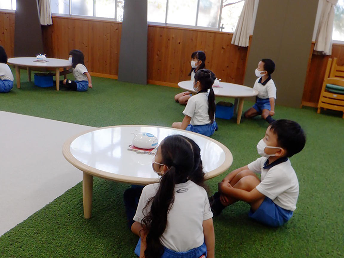 子ども達は、目をキラキラさせながら先生の説明を聴きます。アリロ君がとても可愛くて表情が変わったり、お話したりするので、「可愛い!」と興味津々です。