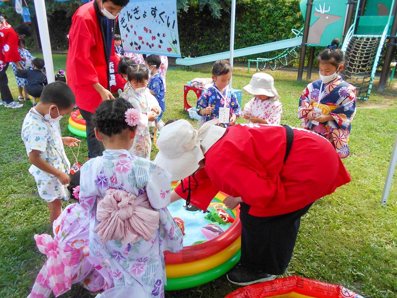 例年は、親子で『夕涼み会』として行っている行事ですが、昨年度は中止となり、今年は形を変えて園児と先生とで手作りの夏祭りを行いました。