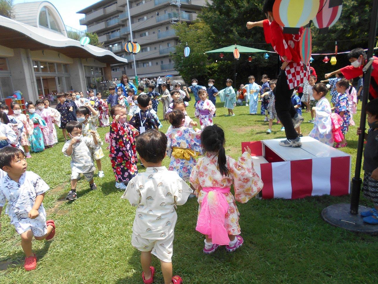 子ども達は、浴衣や甚平を着てすっかりお祭り気分です。ワクワクドキドキの笑顔があちこちに飛び跳ねています。