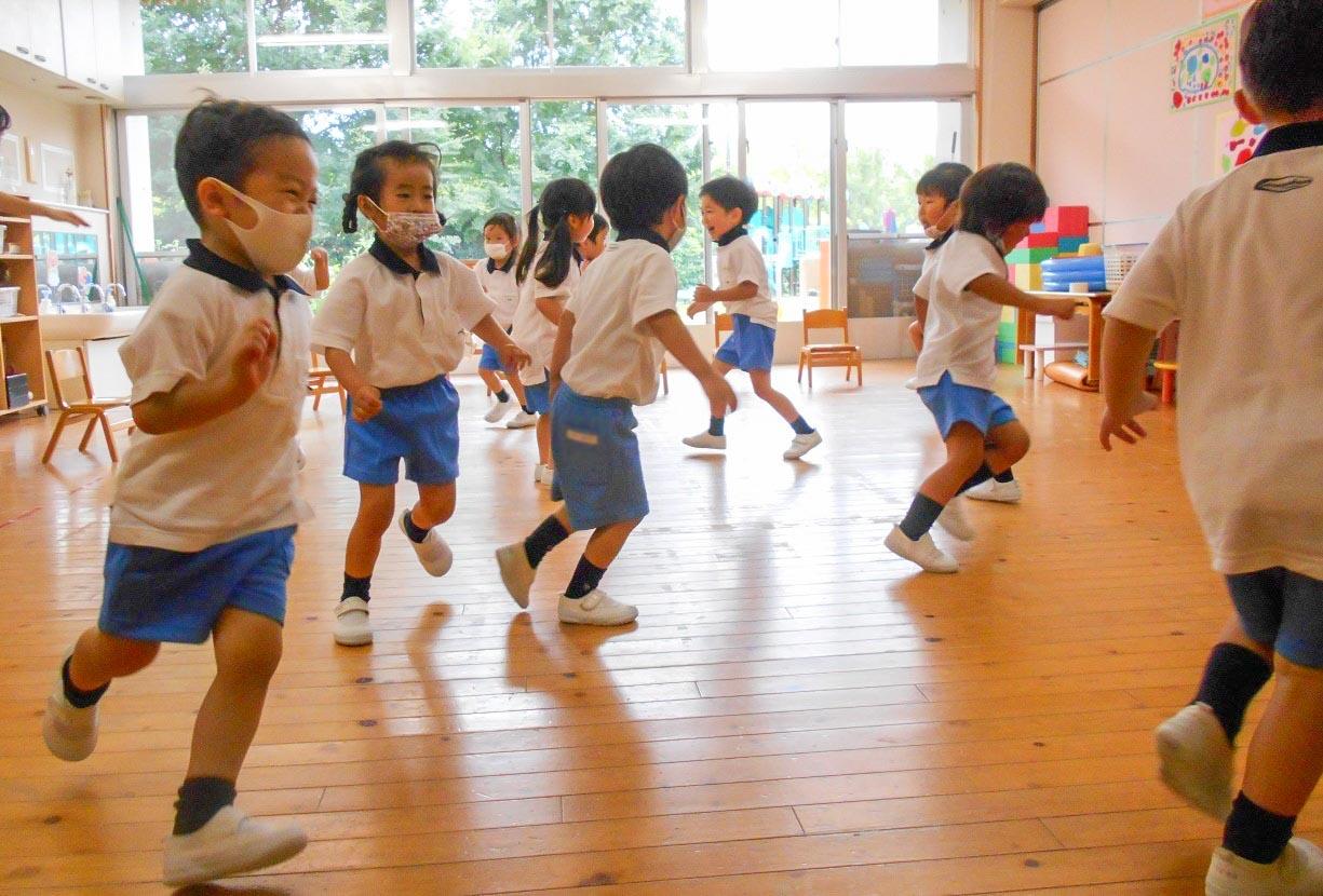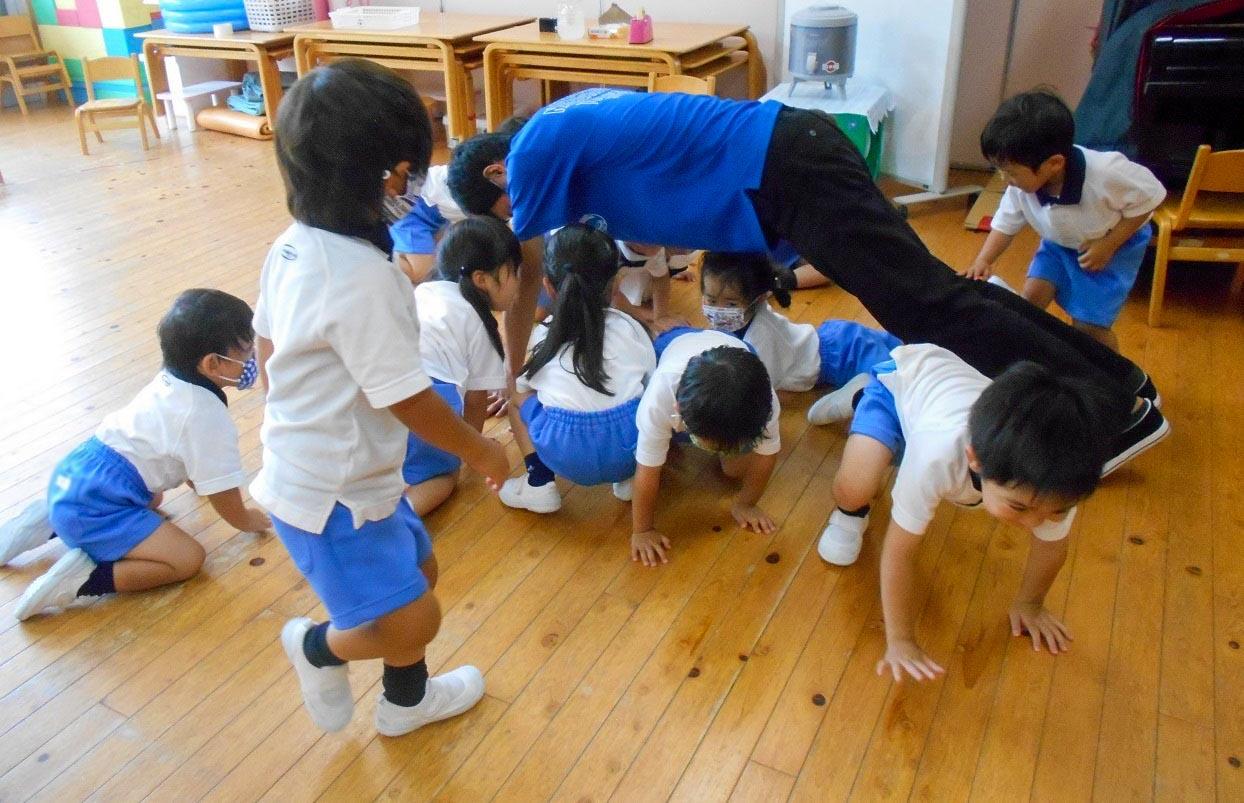 生まれてからそれぞれ経験の違う子ども達が、集っているわけですから、また、月齢の違う子ども達もいますから、出来たり出来なかったりしますが、やる前に諦めてしまわないように、全ての子どもに有能感を育てたいと考えています。スポーツのコーチや体育の先生の専門性にも関わってもらいながら、普段の保育でも、律動や運動遊びに親しみながら、やったら出来る感覚を身につけていきます。