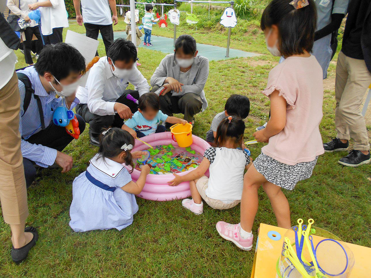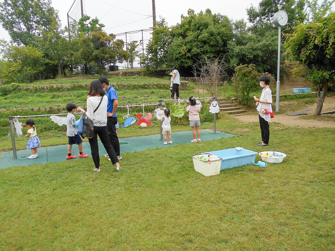 ☆「空気砲」☆「動物ヨーヨーつり」☆「かえるすくい」☆「金魚すくい」☆「水鉄砲」☆「うちわでシャボン玉」☆「スクーター」☆「棚田の水路遊び」☆「総合遊具(すべりだい)」☆「砂場遊び」