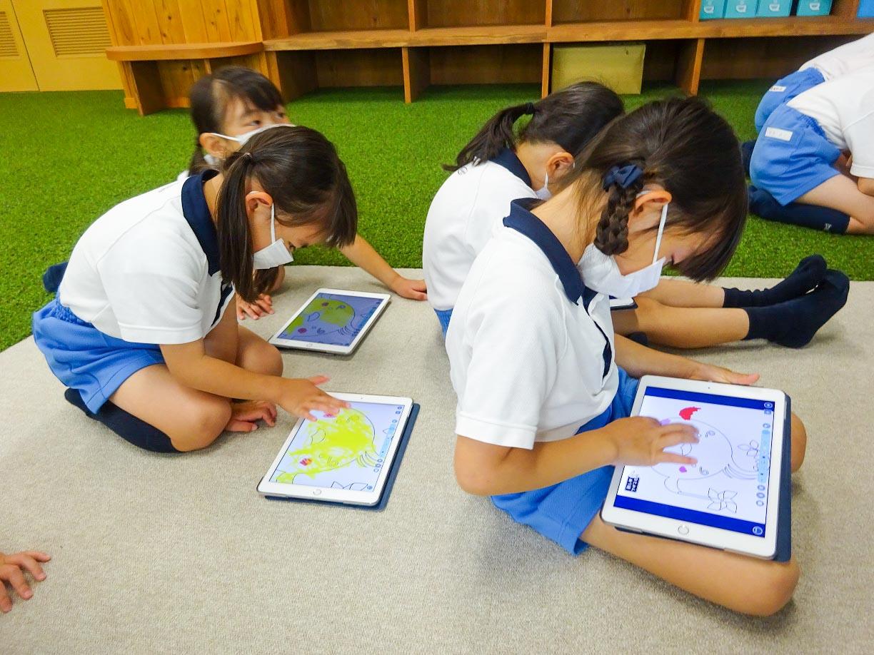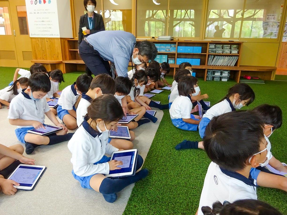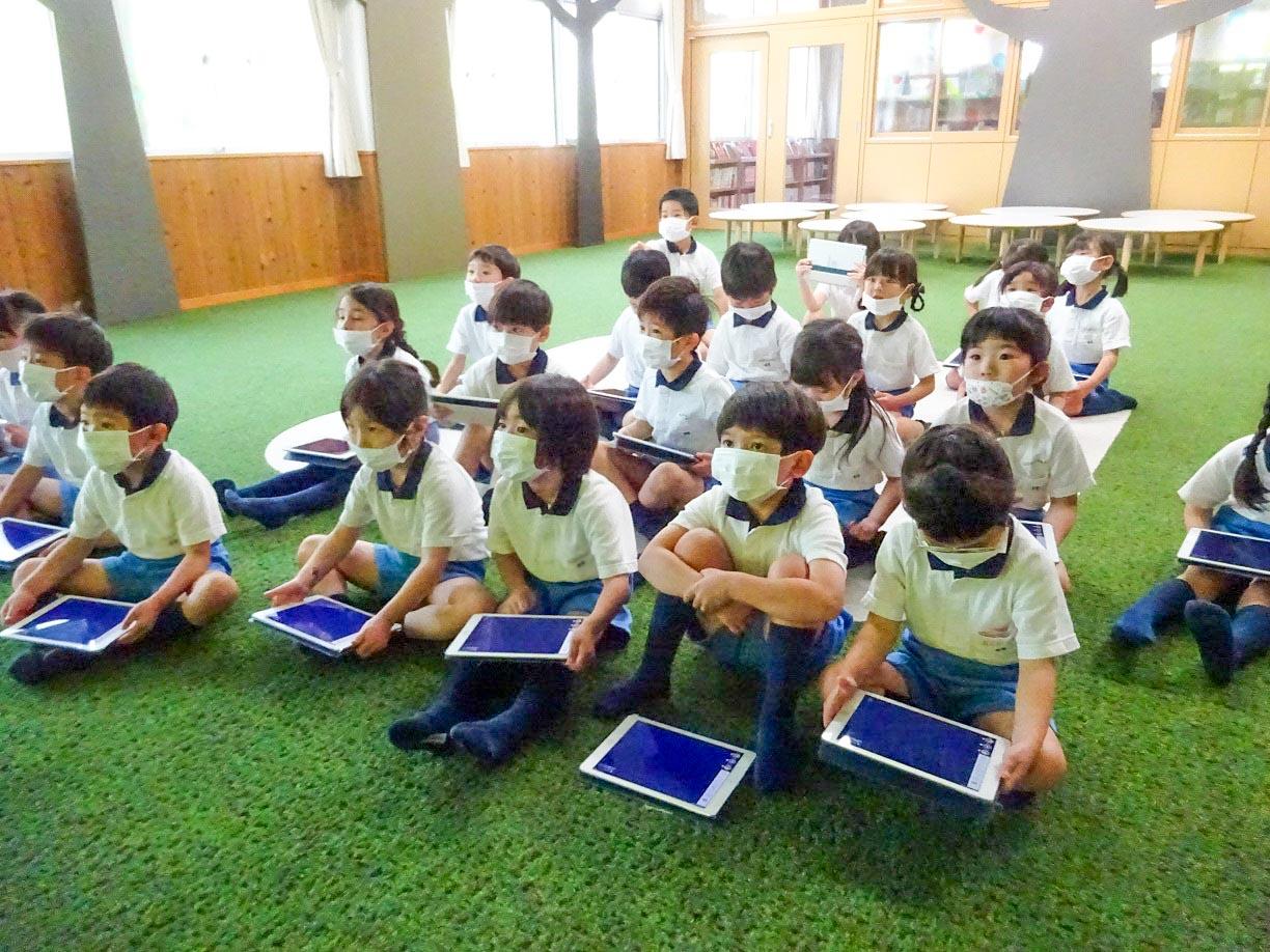 一人一人が自分のタブレットPCを使うという体験で、子ども達は「小学校って楽しいなあ」「ちょっとドキドキして難しかったけど、またやってみたいなあ」と小学校への憧れを抱いたようです。