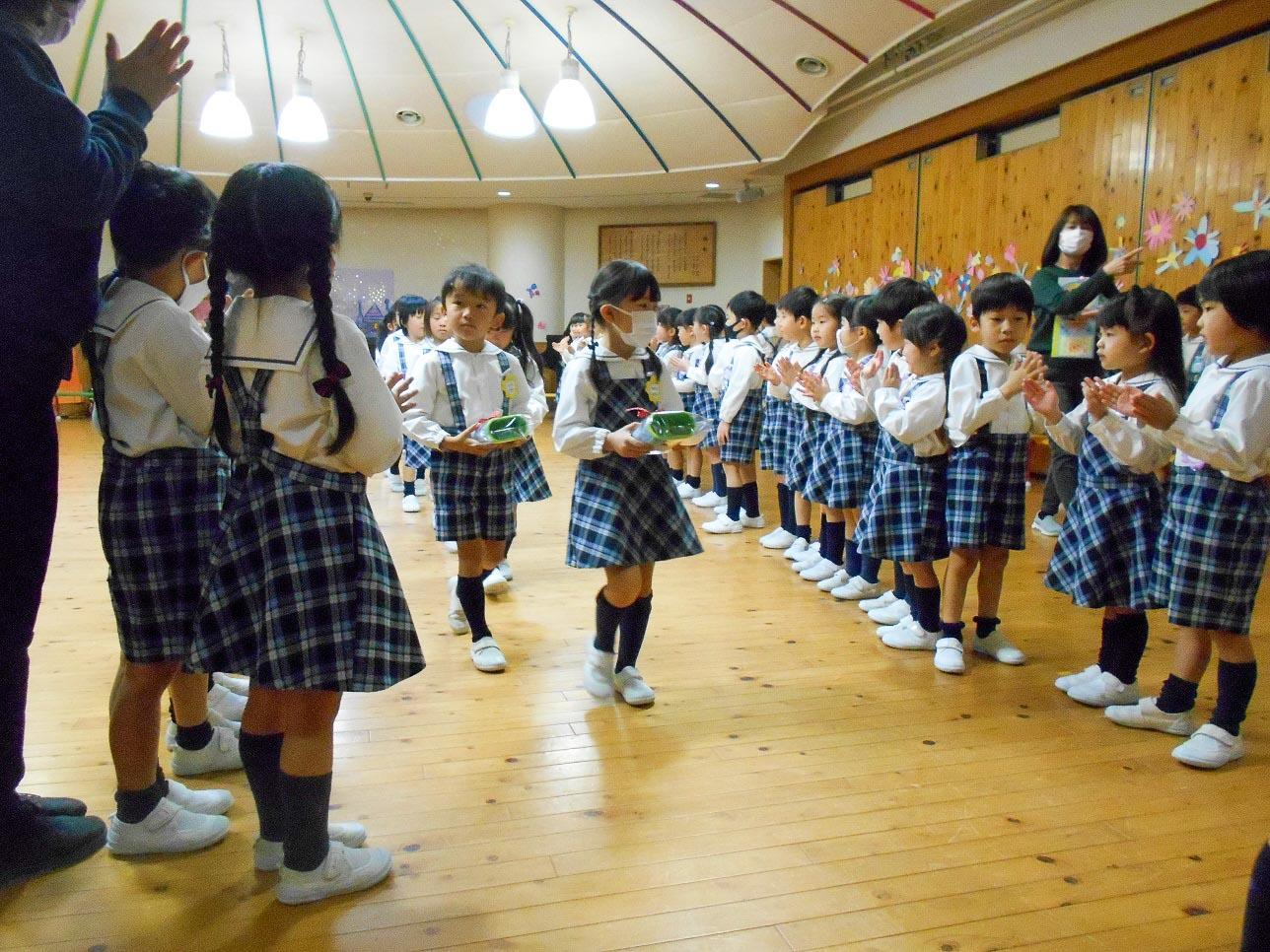 「優しい大きい組さんになってください」との言葉に年少・年中組さんたちは「はい、わかりました」としっかり返事をしていました。