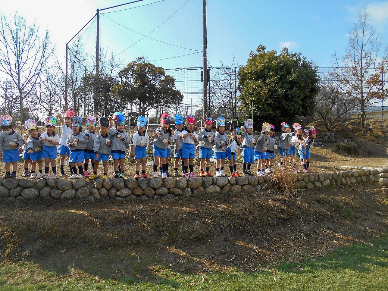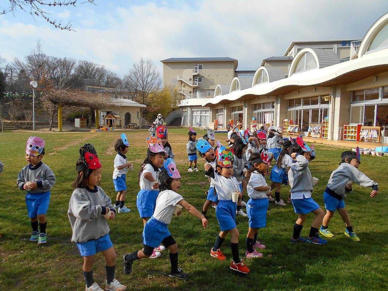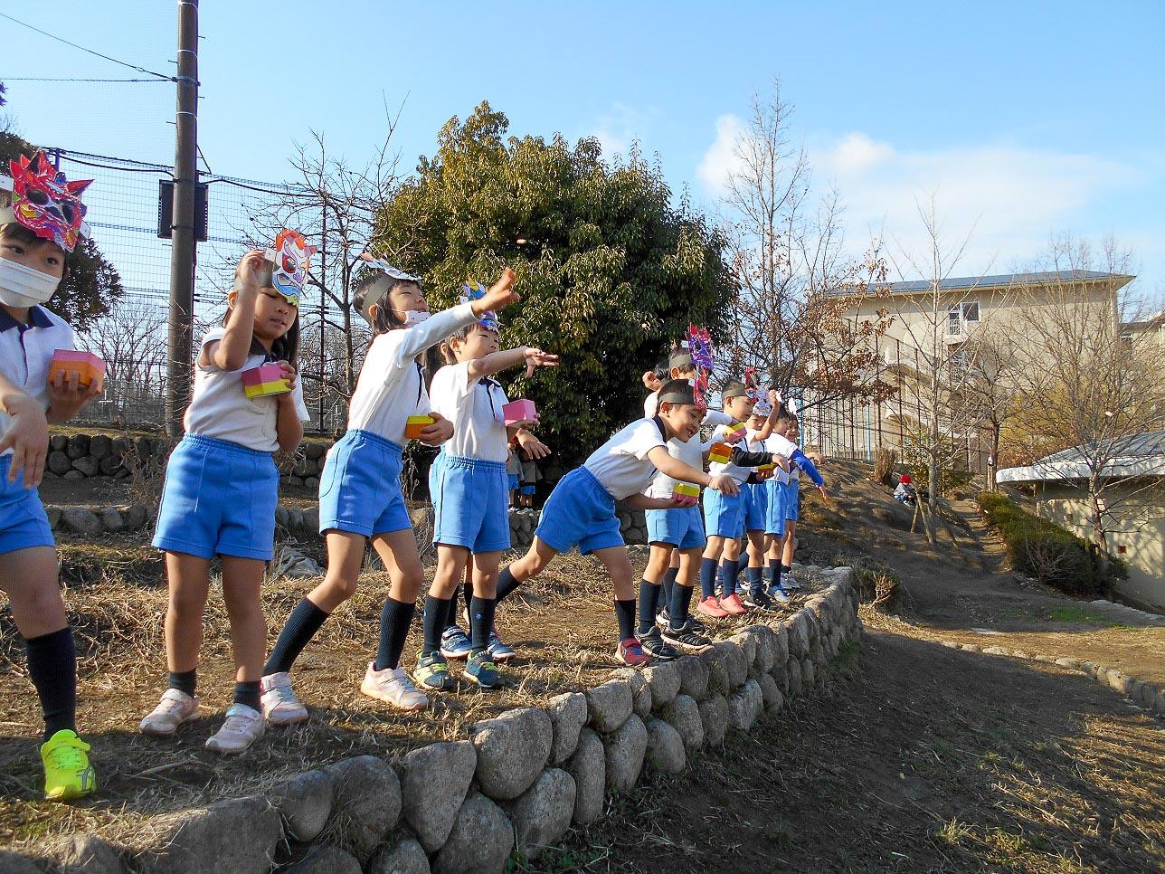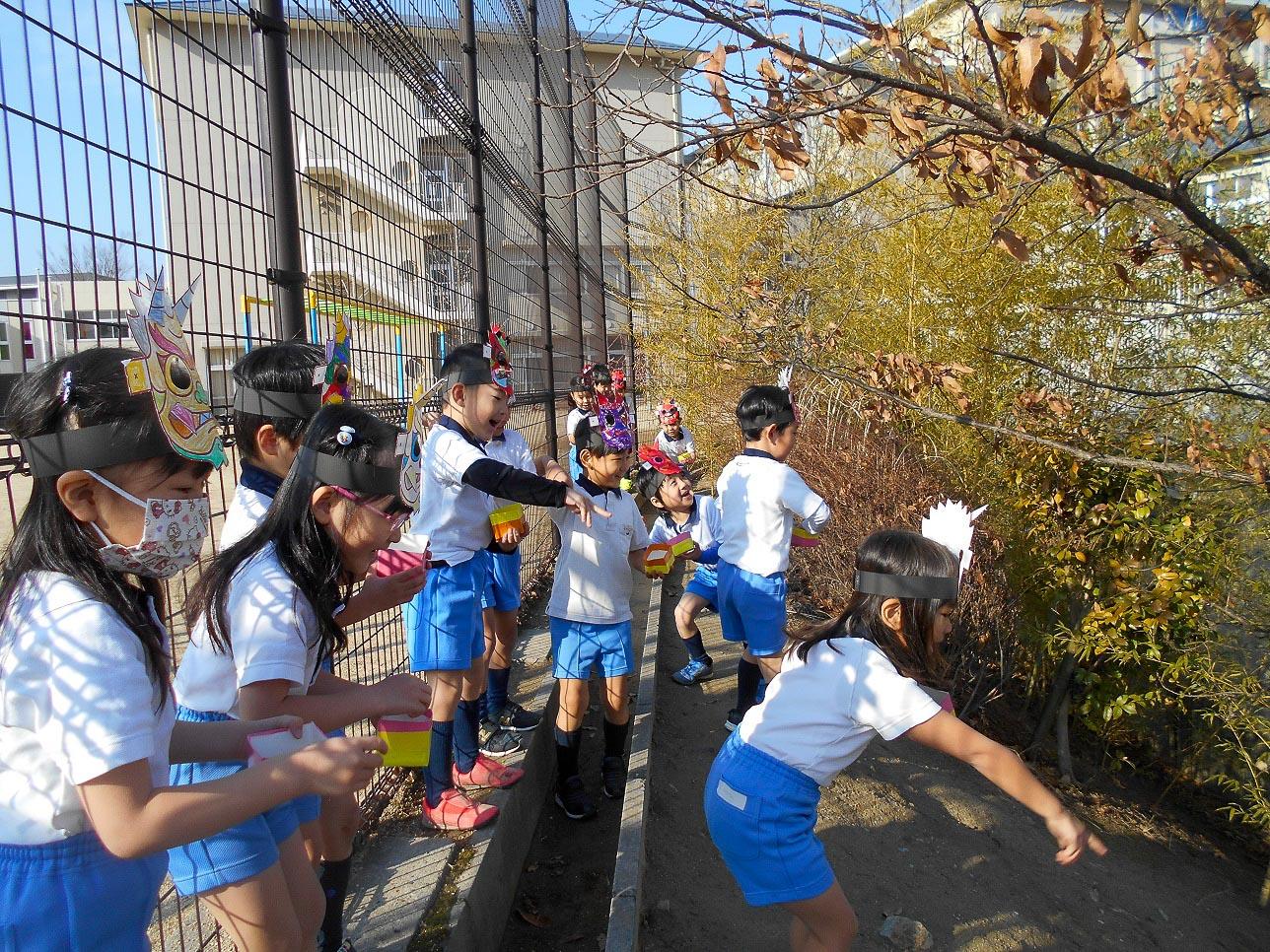 子ども達は、節分に豆まきをすると身体の中や心の中に住んでいる鬼が、出て行ってくれるというお話を聞きました。